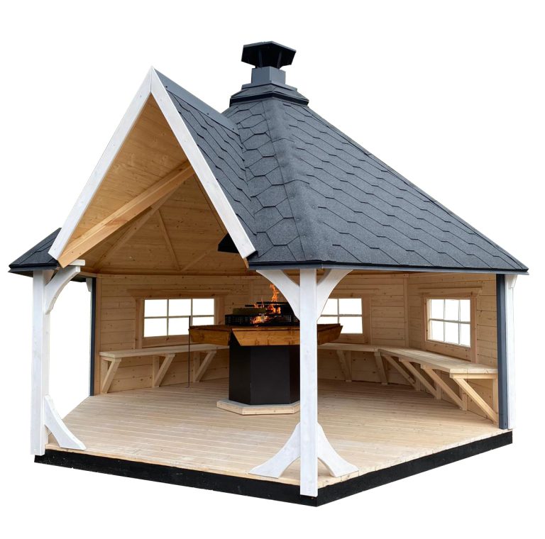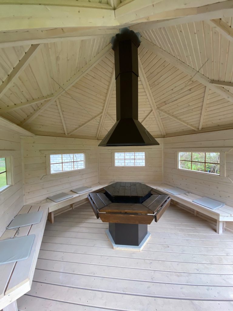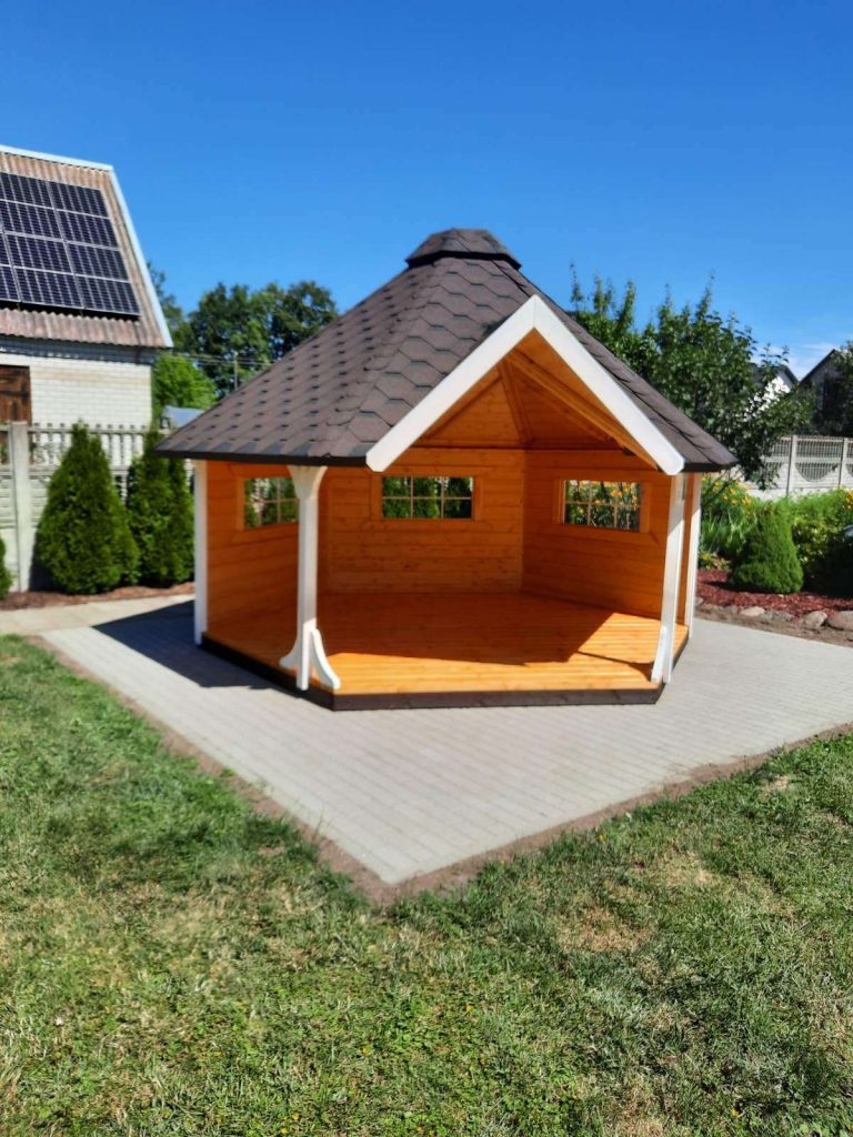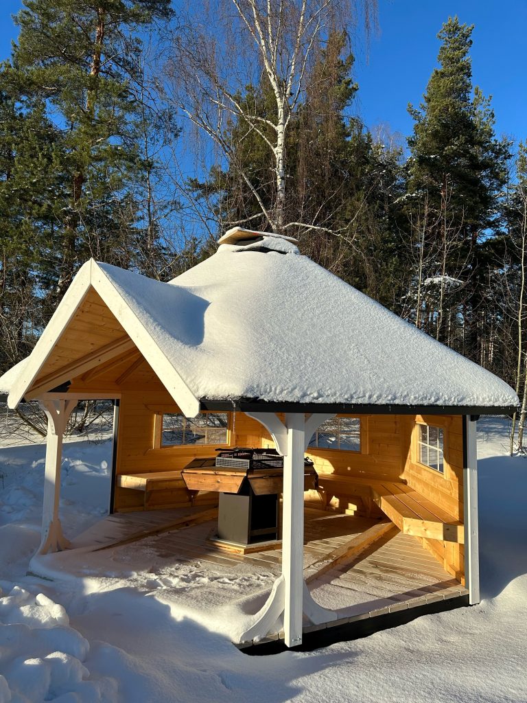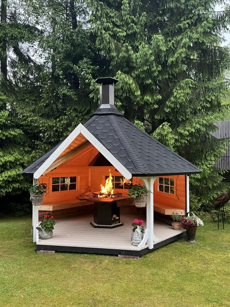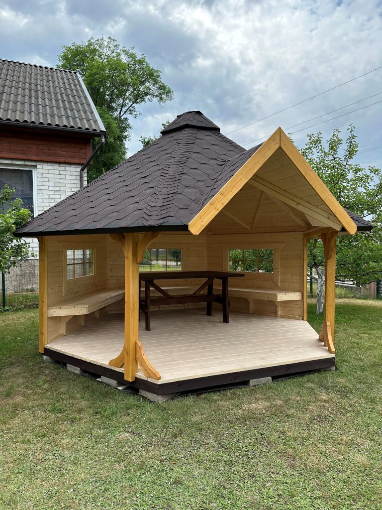 Open grill house – the perfect solution for those who love BBQ and socializing. It is a great get–together gazebo all year–round when you can enjoy friends and family while preparing your favorite meals. The key feature – is the steel grill stove, which is located in the middle of a pergola.