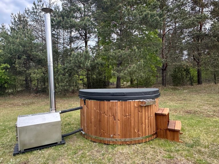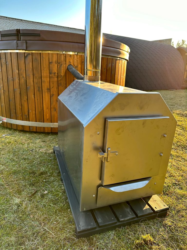 An external wood-fired stove offers more space in the hot tub, also it is more user-friendly, as the heater will be installed outside the hot tub, therefore you will need more space to set it up. It will take less time to clean inside the tub. It is easier to remove ashes from the external heater without contaminating the water. Hot tub heating time will be slightly longer (30 minutes as compared with the internal heater). External heaters are also slightly more expensive and you also need to make sure the heater is drained if you are expecting freezing temperatures.