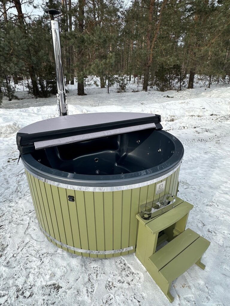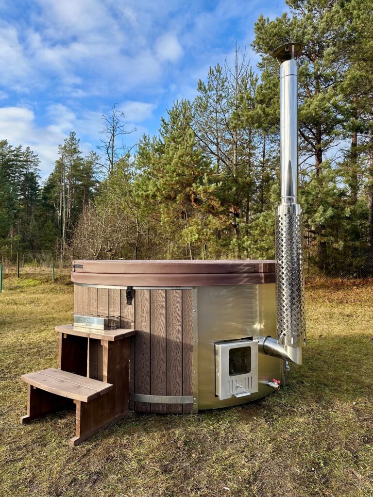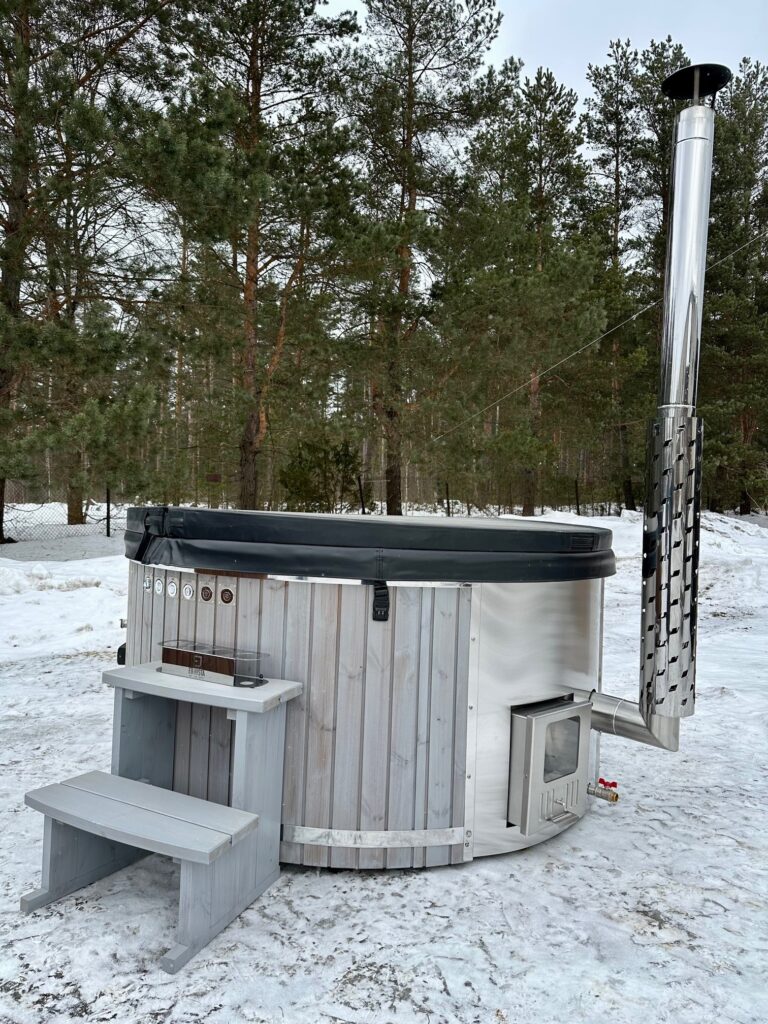 Integrated heaters offer faster heating time than external wood-fired stoves as there is almost zero heat escape. One of the biggest advantages of integrated heaters is their external log feed. External feed will allow you safely load your heater with wood and remove ashes without contaminating water. The integrated heater is hidden inside the hot tub, forming a step (“baby chair”), which can be used for kids to sit or for adults to rest, making this hot tub perfect for families.