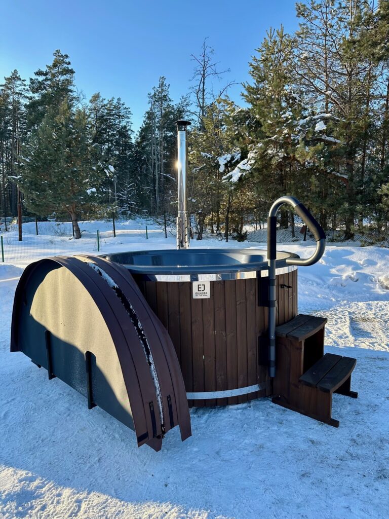Fiberglass tubs provide the optimal price and performance ratio. The advantage of these tubs is that the wooden exterior can be easily replaced without having to change the whole hot tub. Unlike other tubs, the hot tub insert is made of a single piece of fiberglass fabric with curved benches which allow you to save up to 500 liters of water. Only fiberglass hot tubs come with an integrated heater inside, giving them a particularly elegant and luxurious look, it also does not have any additional exterior details that require additional space. The fiberglass Hot Tub is a durable product that does not require any additional investment or expense. The advantage of such product is an extremely easy maintenance.