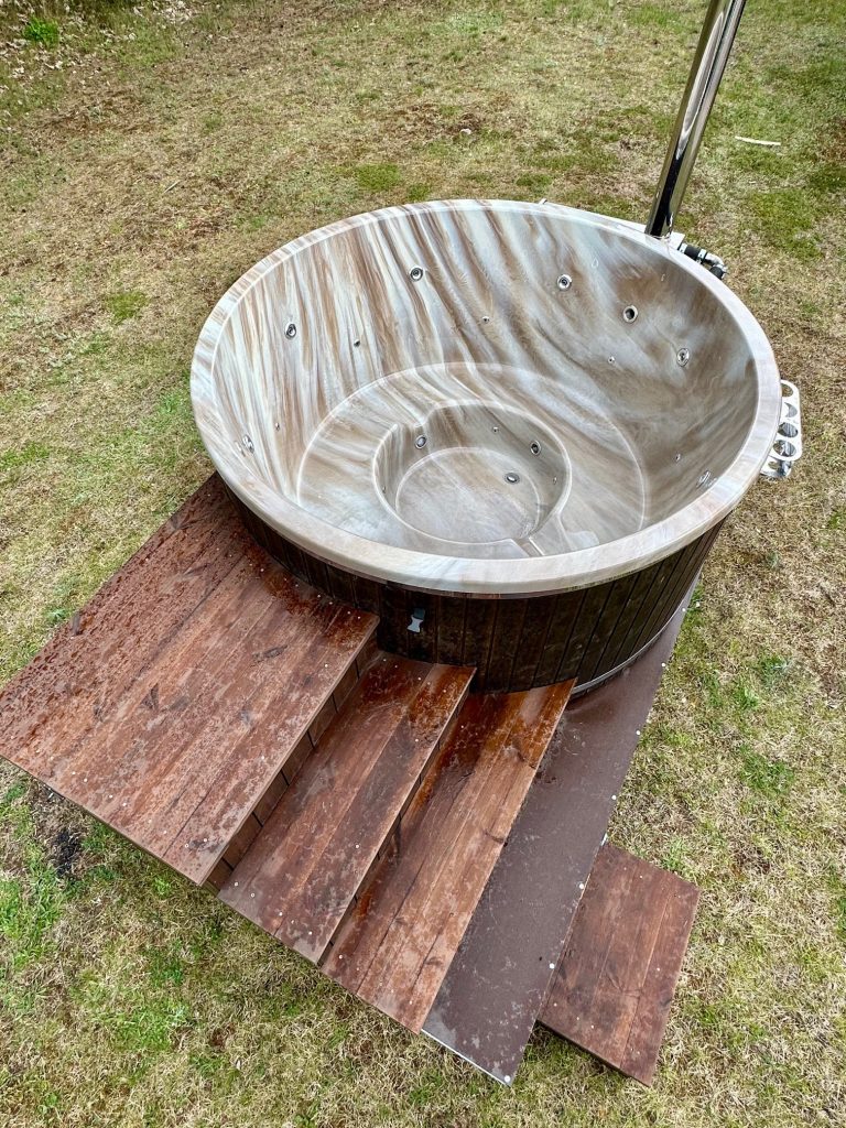 • Wooden, plastic, or fiberglass hot tub from our hot tubs list.**