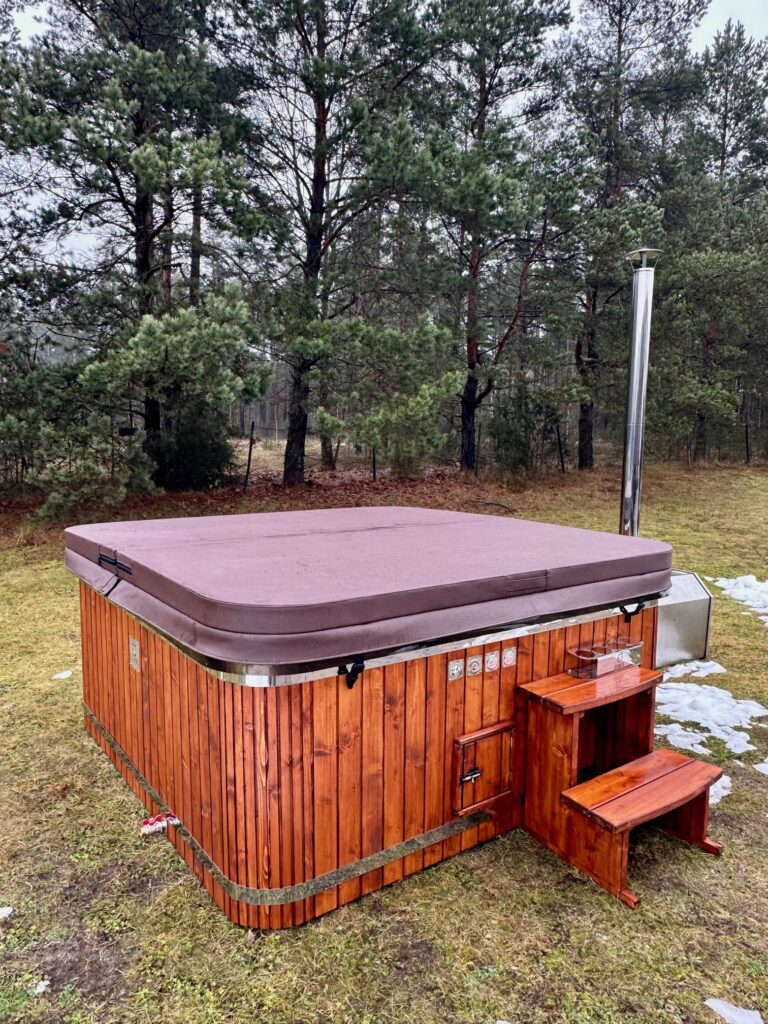 This stove provides more space in the hot tub, and is also safer for children, as it is installed outside the hot tub. However, it will require more space outside. It will take less time to clean the inside of the hot tub, and it will be easier to remove ash from the stove, avoiding water contamination. The heating time of the hot tub will be slightly longer (an additional 30 minutes compared to an internal stove). External stoves are also slightly more expensive. Moreover, if negative air temperatures are expected and the hot tub will not be used, it will be necessary to drain the water from both the hot tub and the stove.