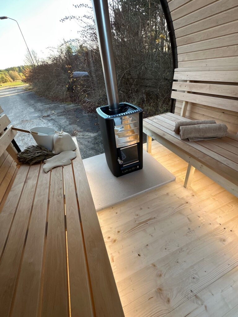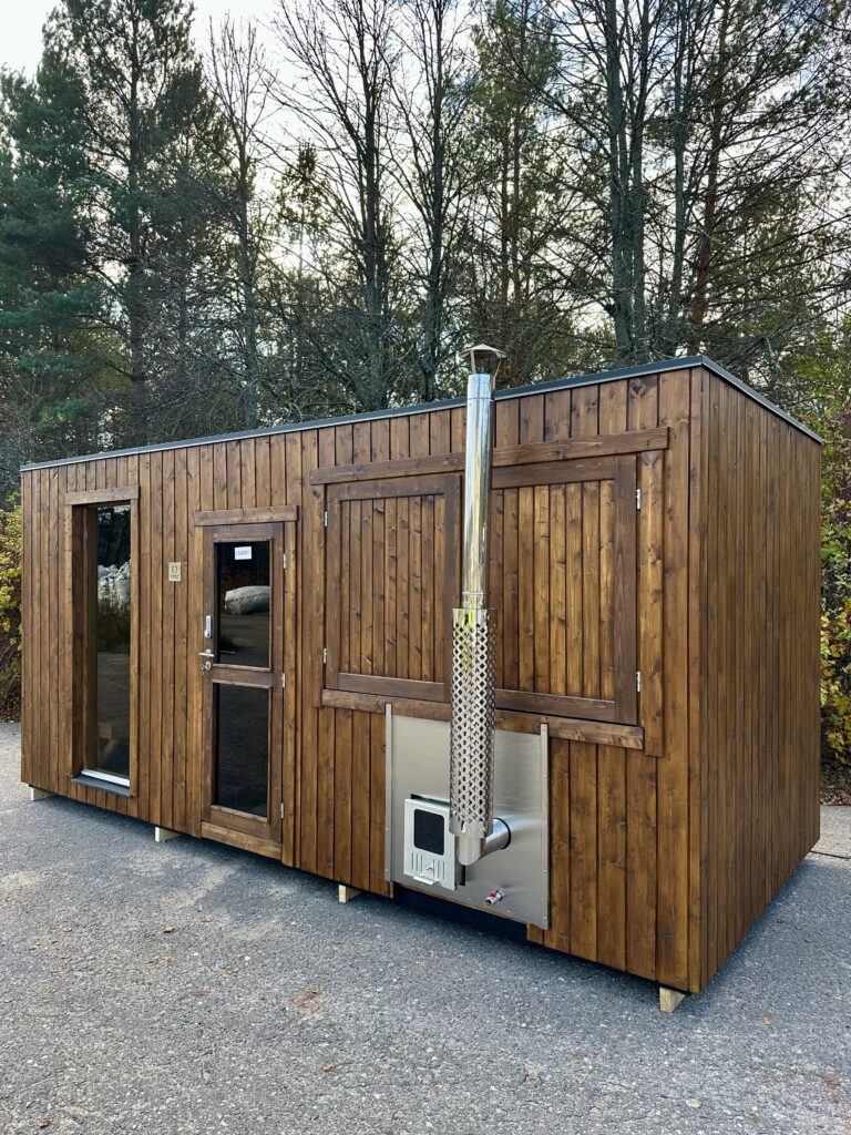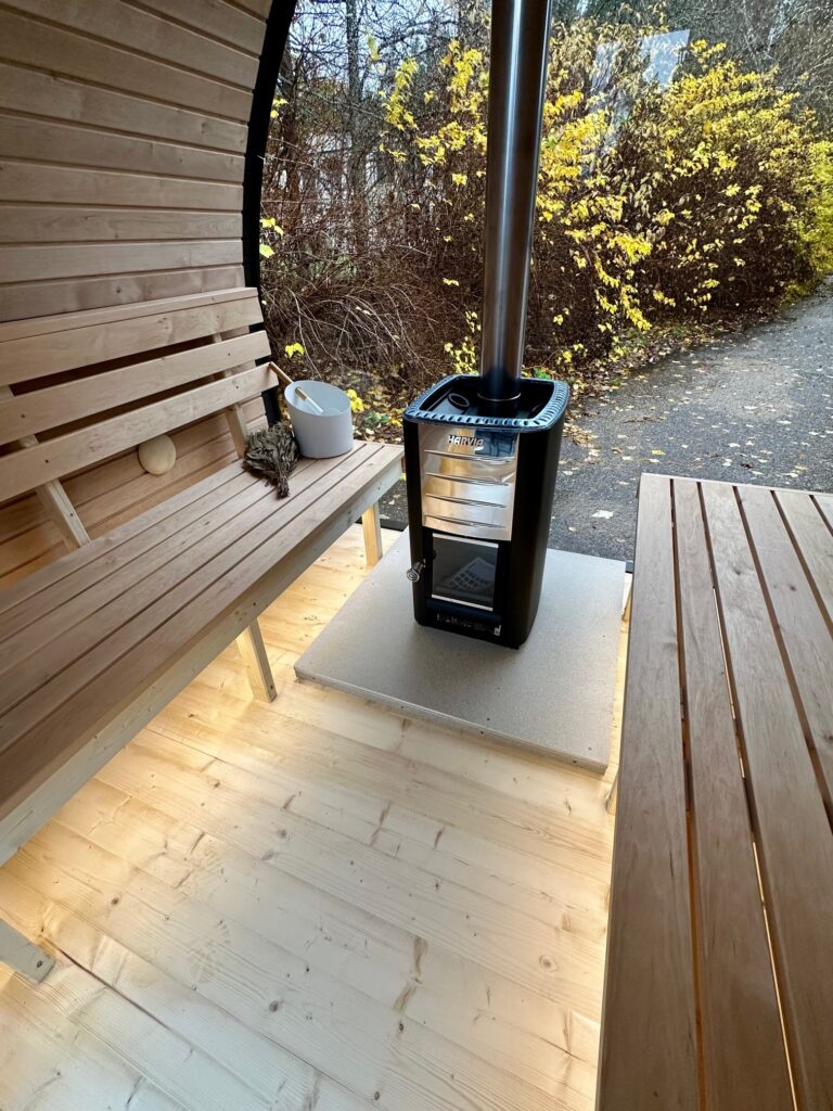 - 2 opposite–facing benches for sitting made of Black Alder, Aspen, or Thermowood