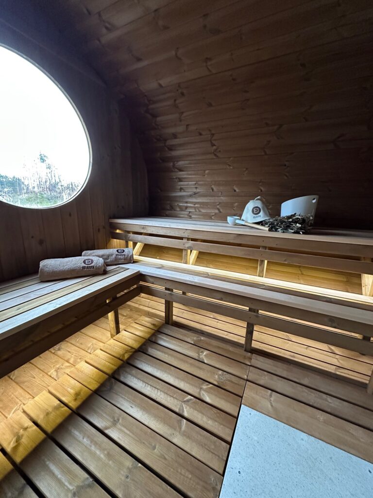 - Steam room with benches made of Black Alder, Aspen, or Thermowood.