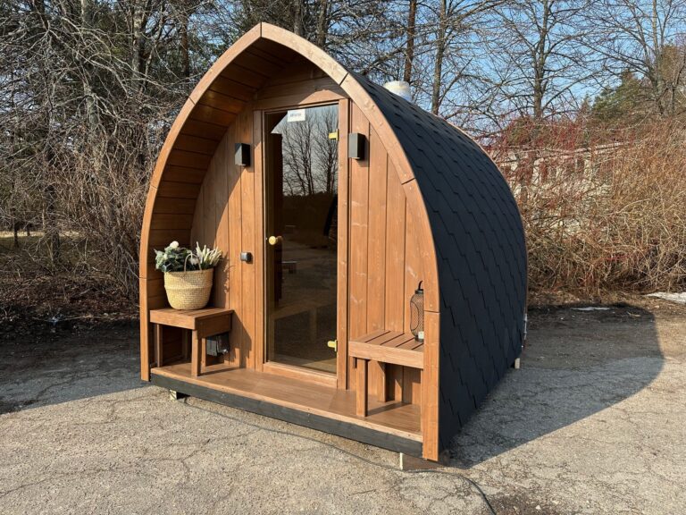 Exclusive design that will enhance the look of your urban yard or the lakeside cottage. Triangle-shaped igloo sauna is characterized by its unconventional design and layout that creates an innovative atmosphere. Saunas of this design come in different sizes and have included backrests for the benches.