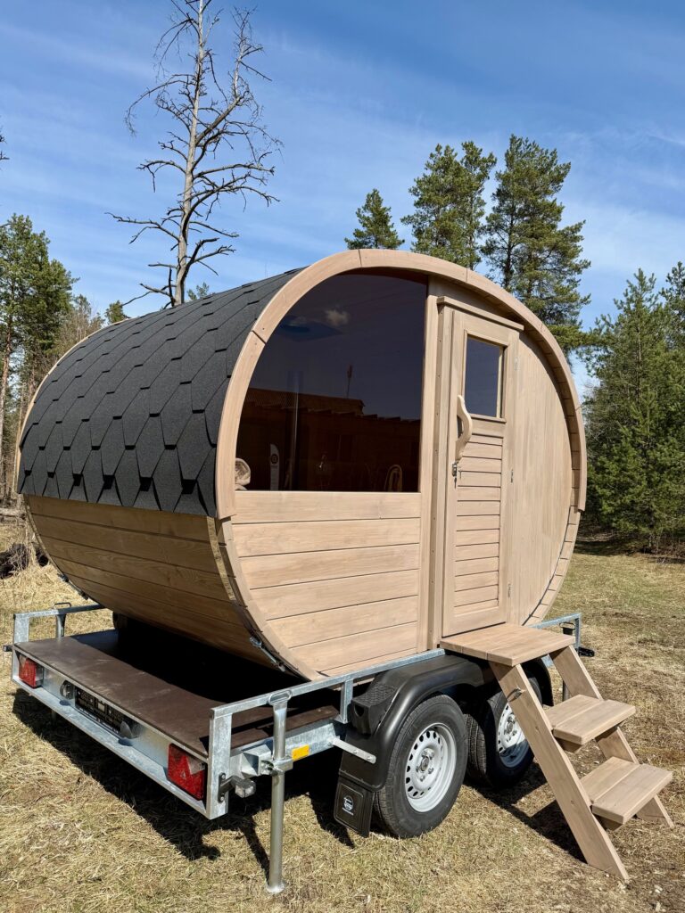 Would you like to take Your favorite igloo, square, or barrel sauna together with You on your travels? This is possible, as some of our popular products can be placed on a trailer and converted into mobile saunas.