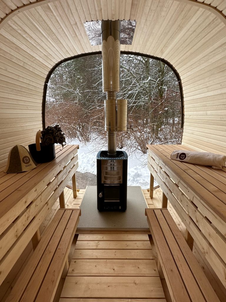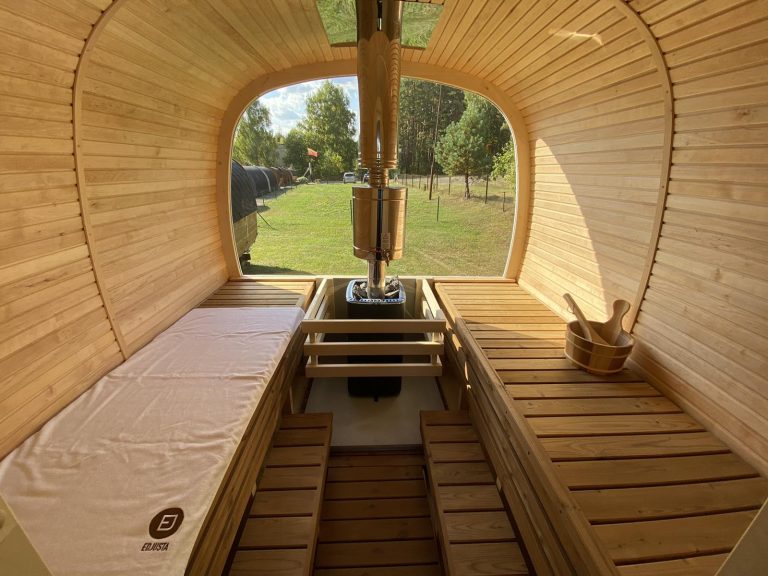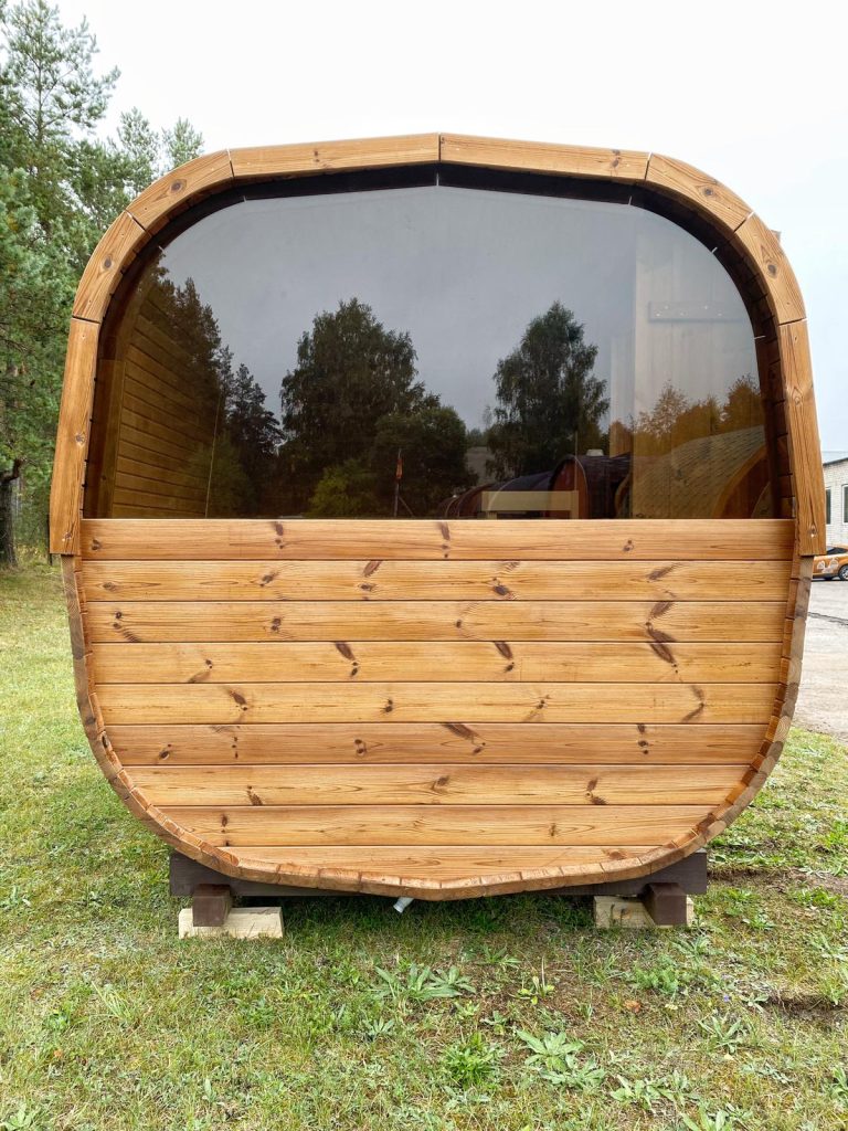 Square saunas are for those who like to stand out from the crowd. Slightly rounded corners not only add more space but also provide a greater sense of comfort. One of the distinctive features of this sauna is a double–decker bench. Heat sessions in such saunas are relaxing, body cleansing and healing.