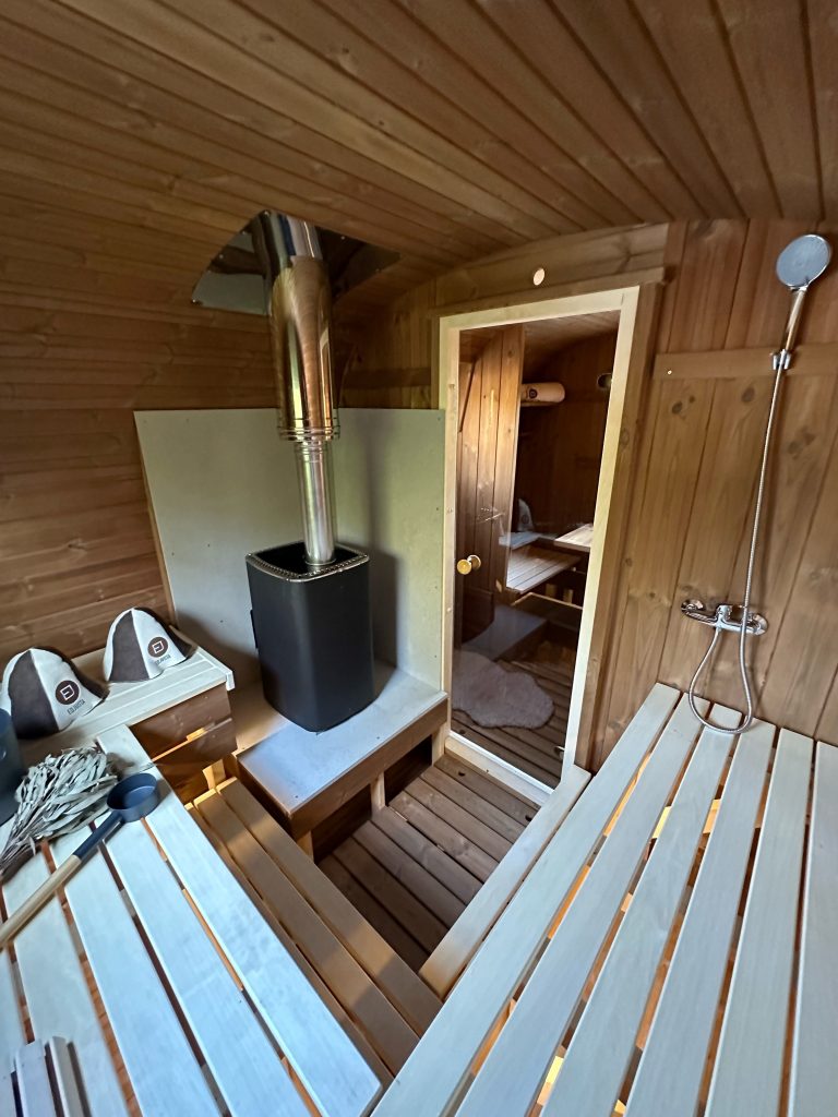 - Sauna insulation (50mm Rockwool + foil + paneling).