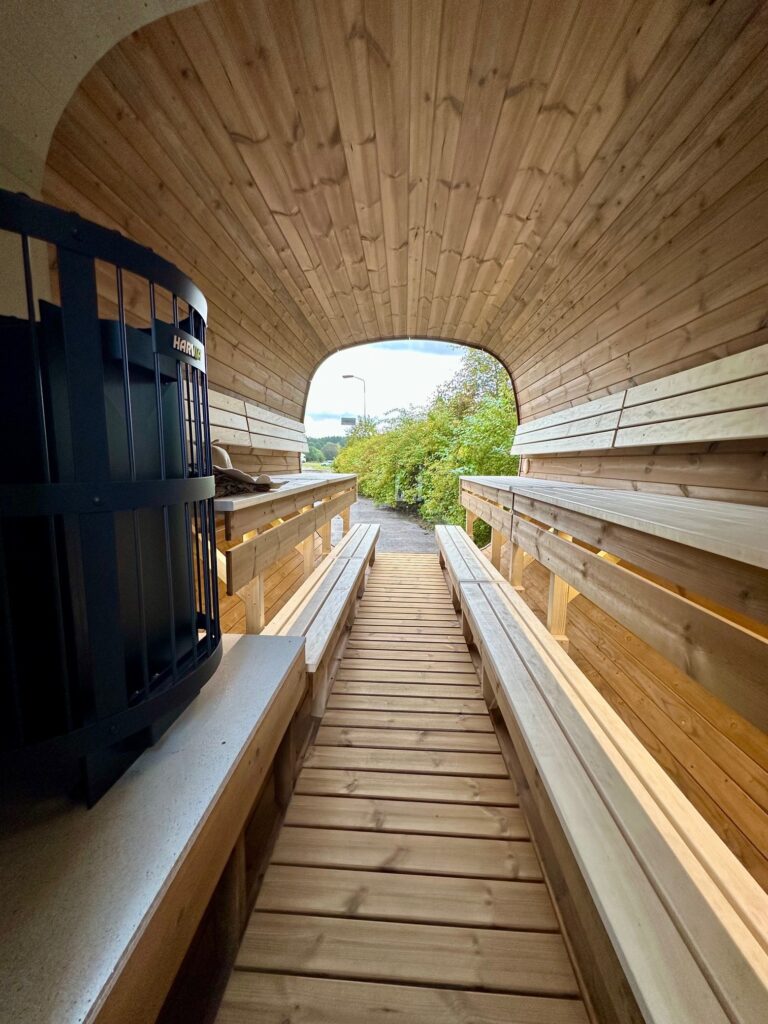 - Various types of benches for sitting made of Black Alder, Aspen, or Thermowood.