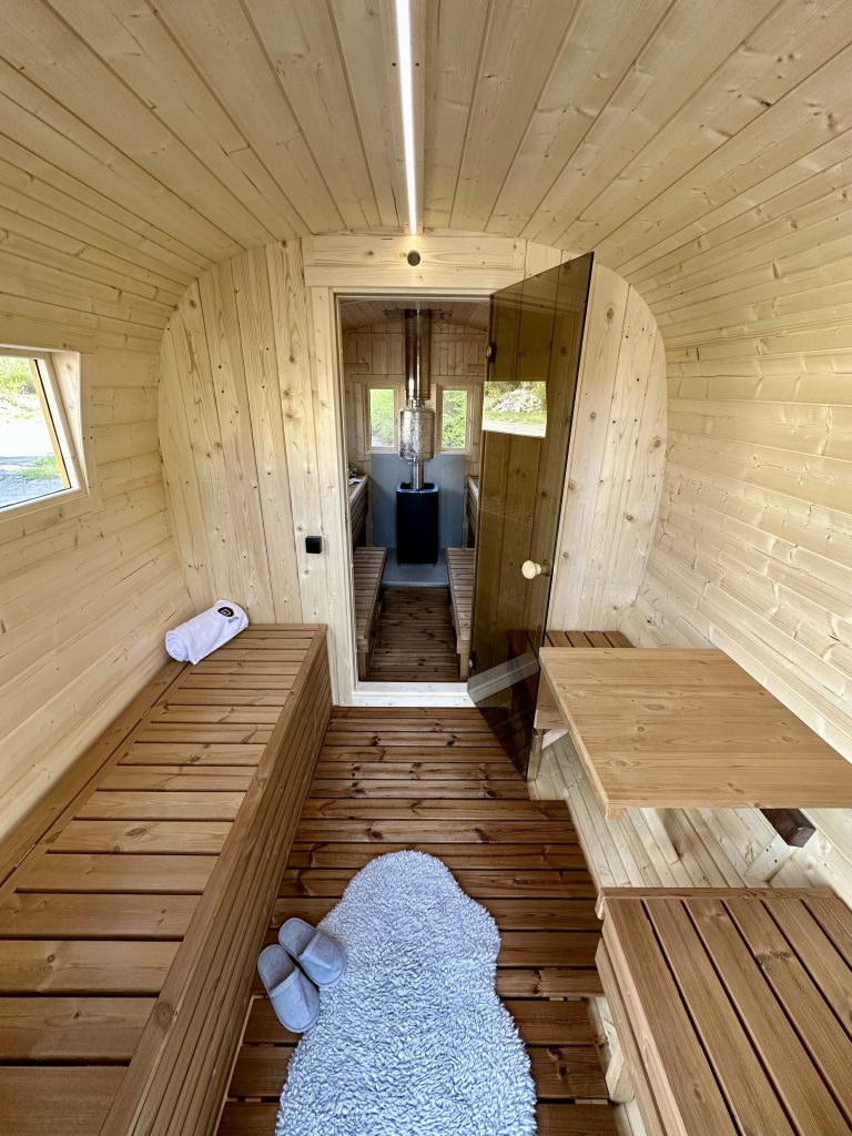 - LED lighting under benches in the sauna area.