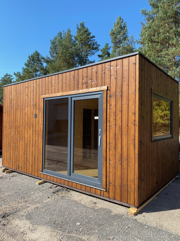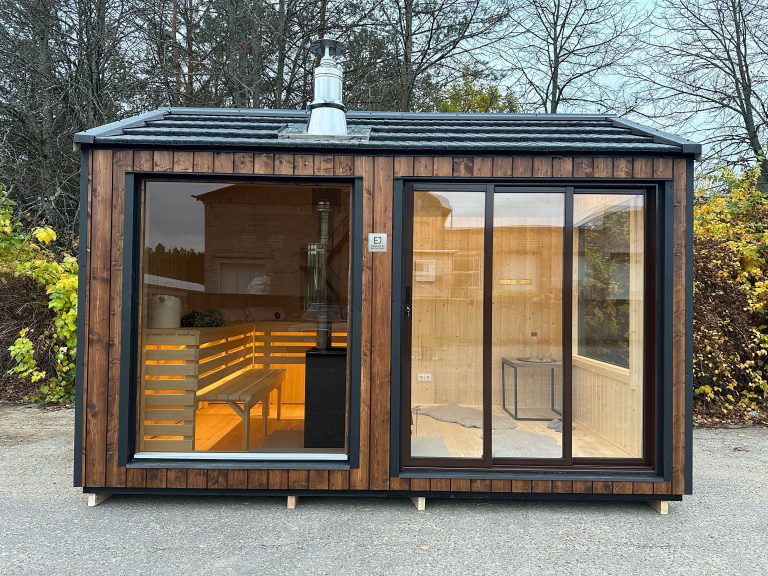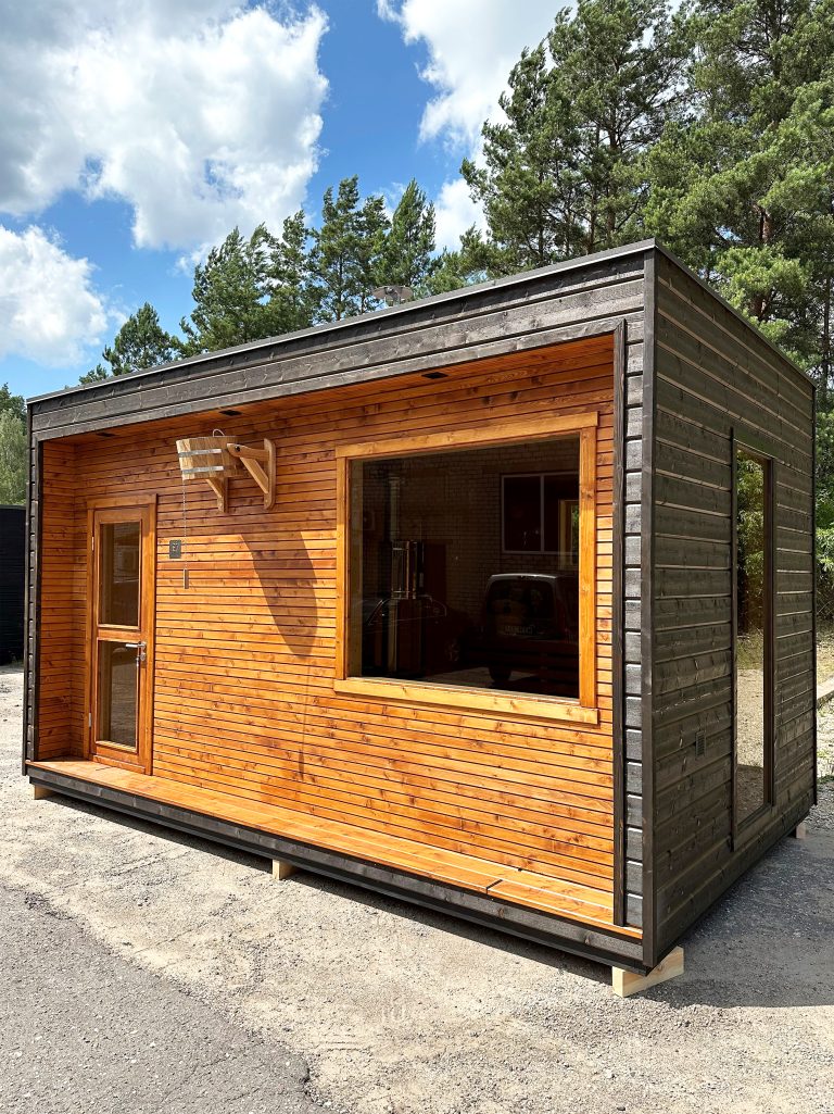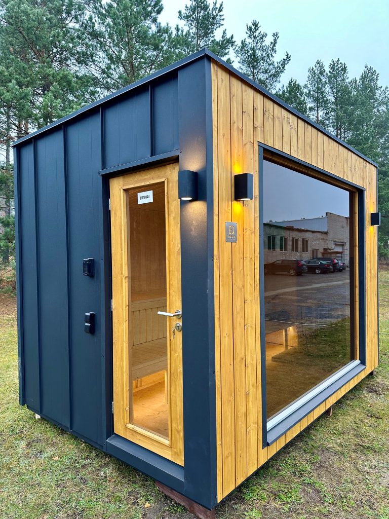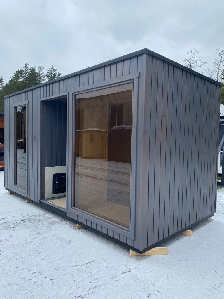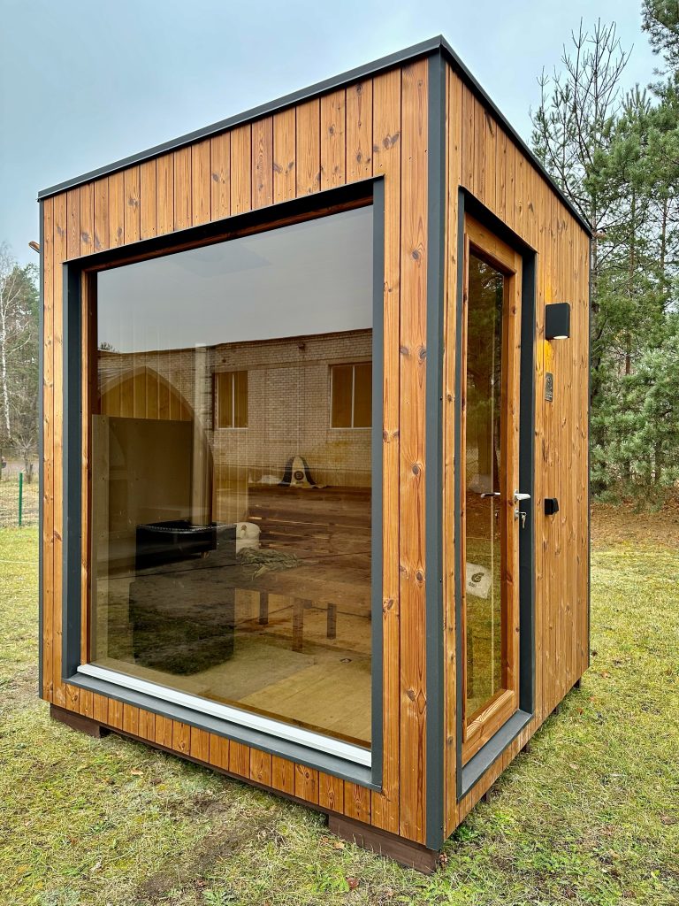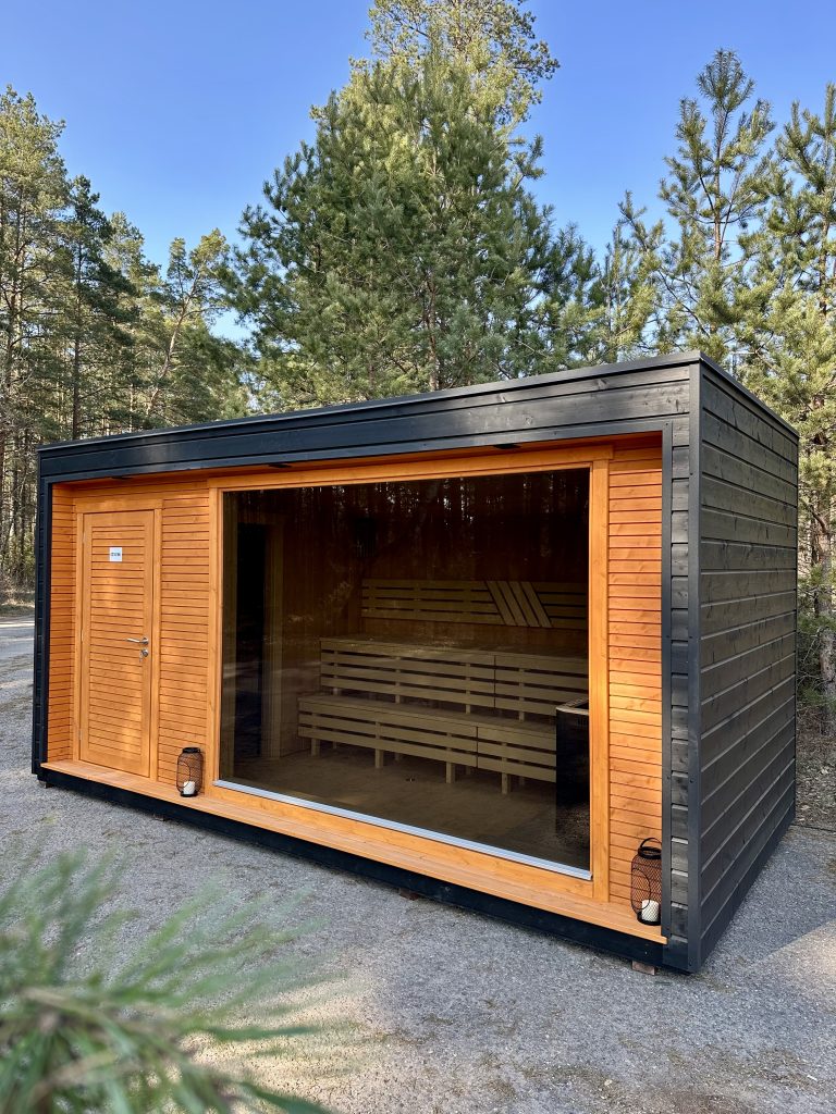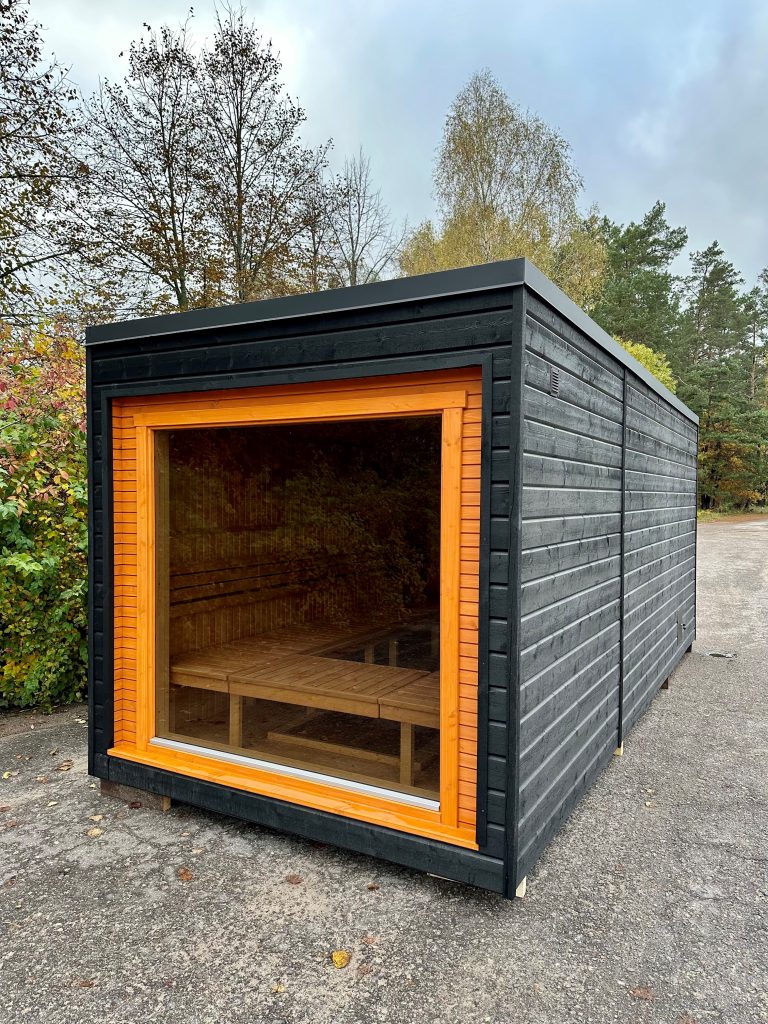 A new, modern design sauna that will look fabulous in your backyard. Large tinted tempered glass windows give this sauna a stylish and contemporary feel. The spacious and cozy lounge area is well-suited for gatherings, relaxation or leisure. You can convert your lounge room into a guest bedroom or swap the entire sauna for a mobile office. Sauna ,,Moderno‘‘ can be customized to match all your needs.