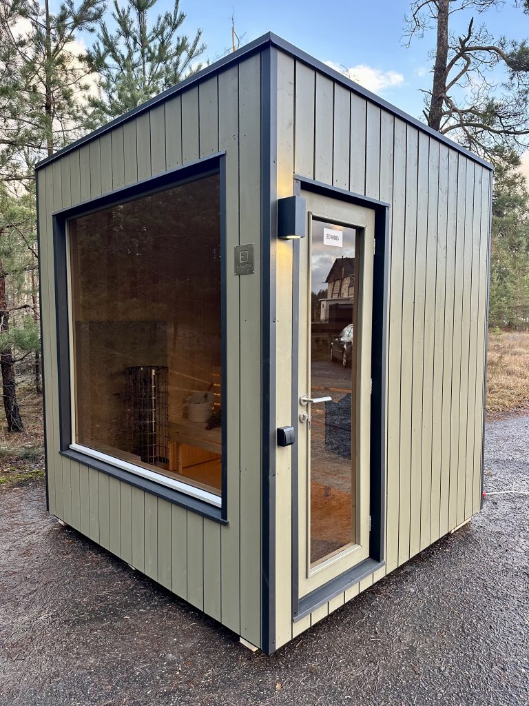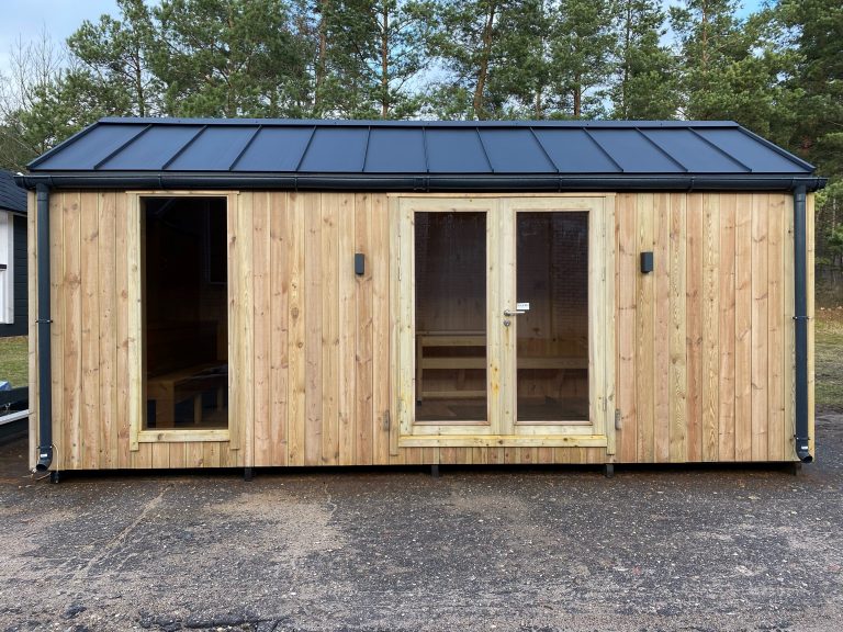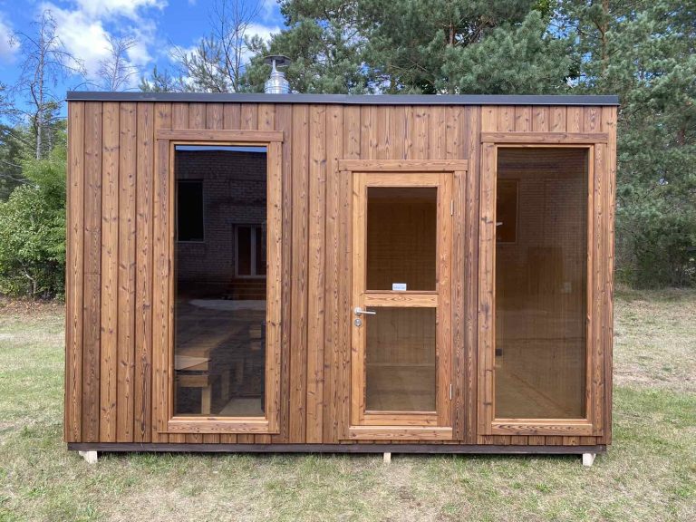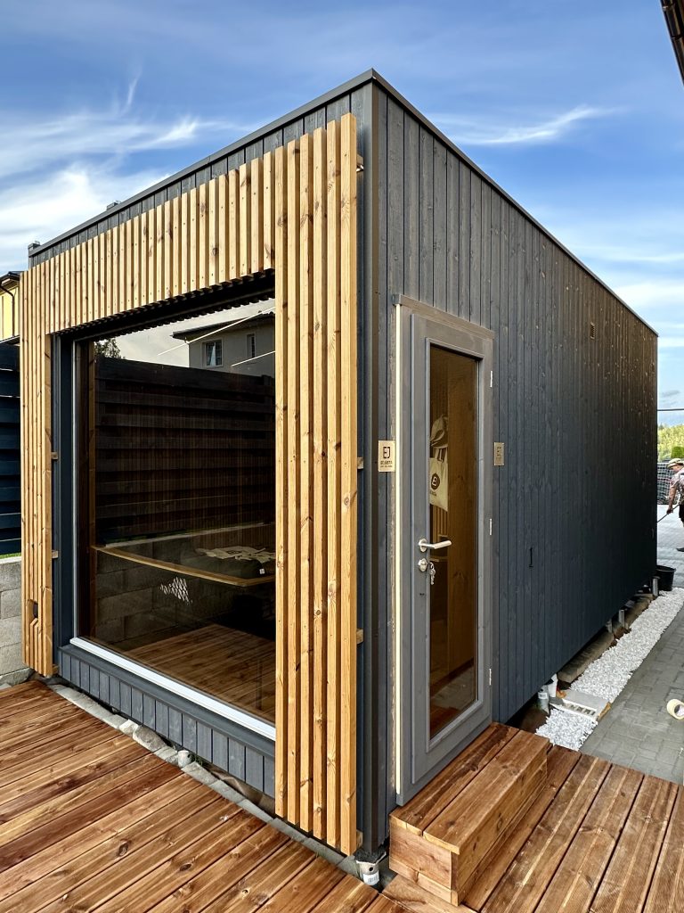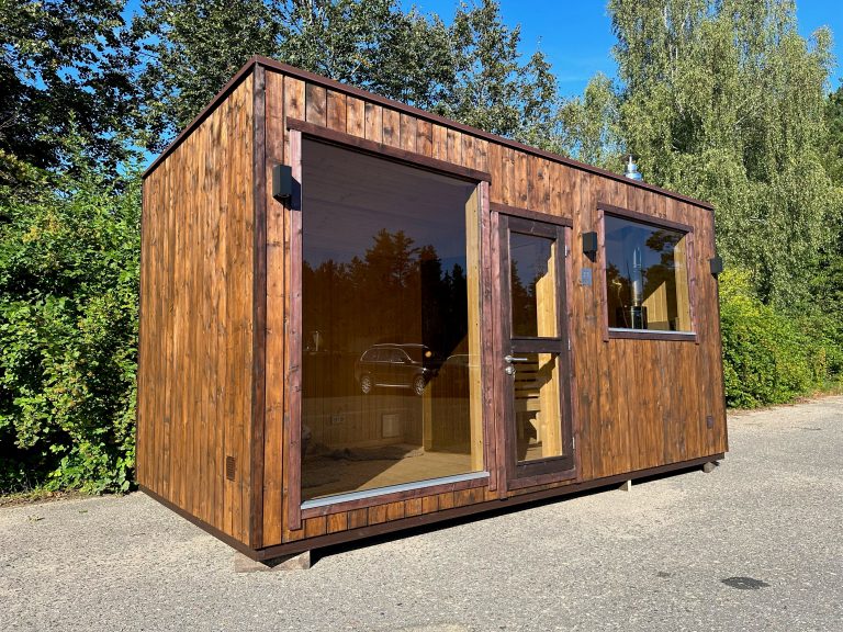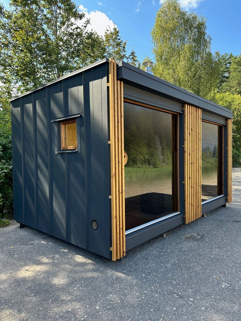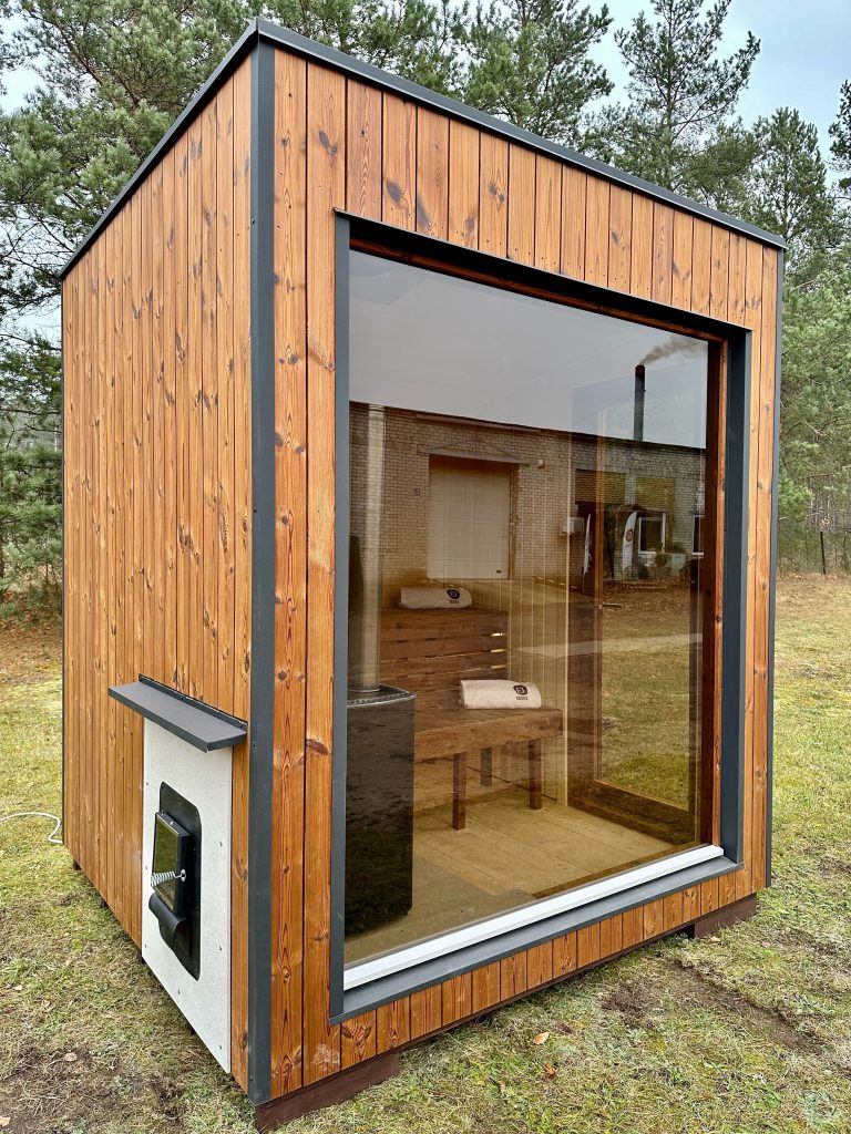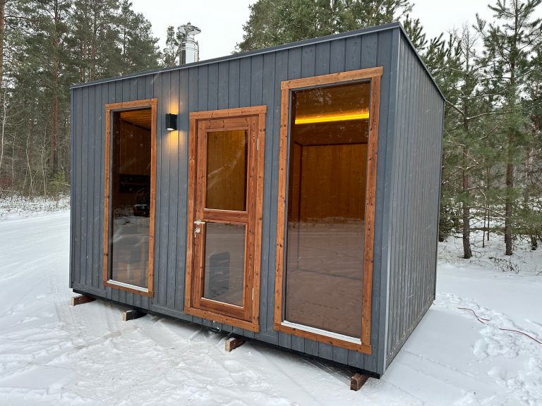 A new, modern design sauna that will look fabulous in your backyard. Large tinted tempered glass windows give this sauna a stylish and contemporary feel. The spacious and cozy lounge area is well-suited for gatherings, relaxation or leisure. You can convert your lounge room into a guest bedroom or swap the entire sauna for a mobile office. Sauna ,,Moderno‘‘ can be customized to match all your needs.