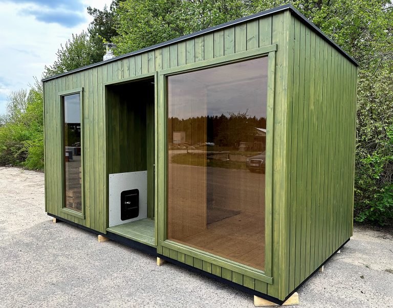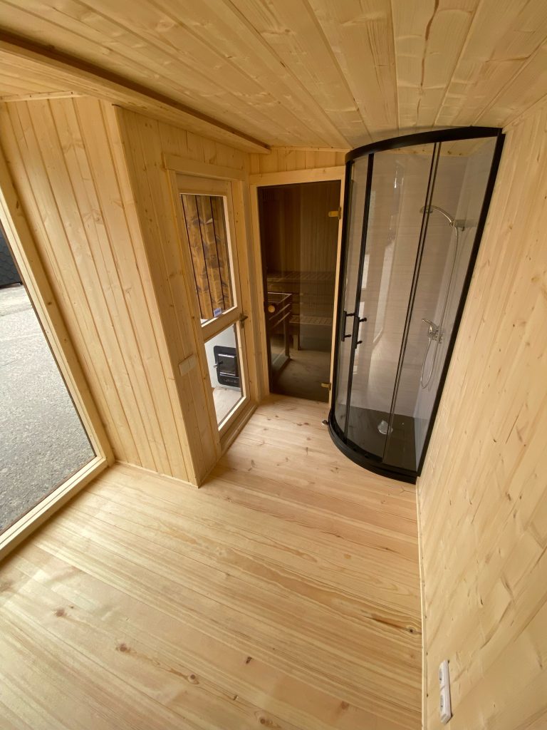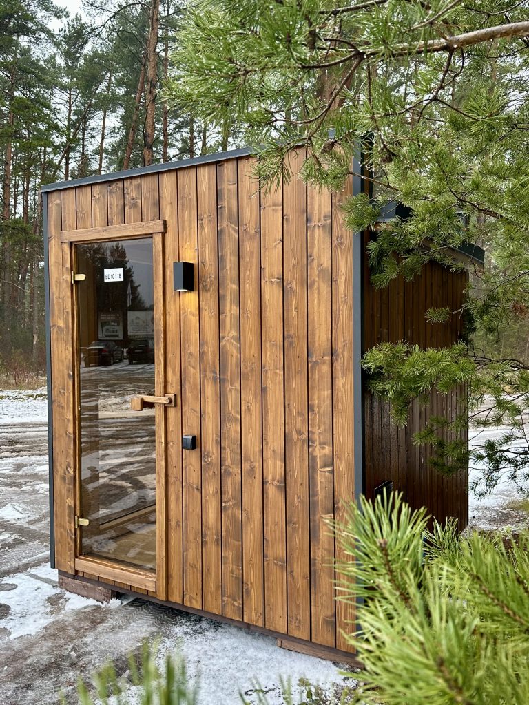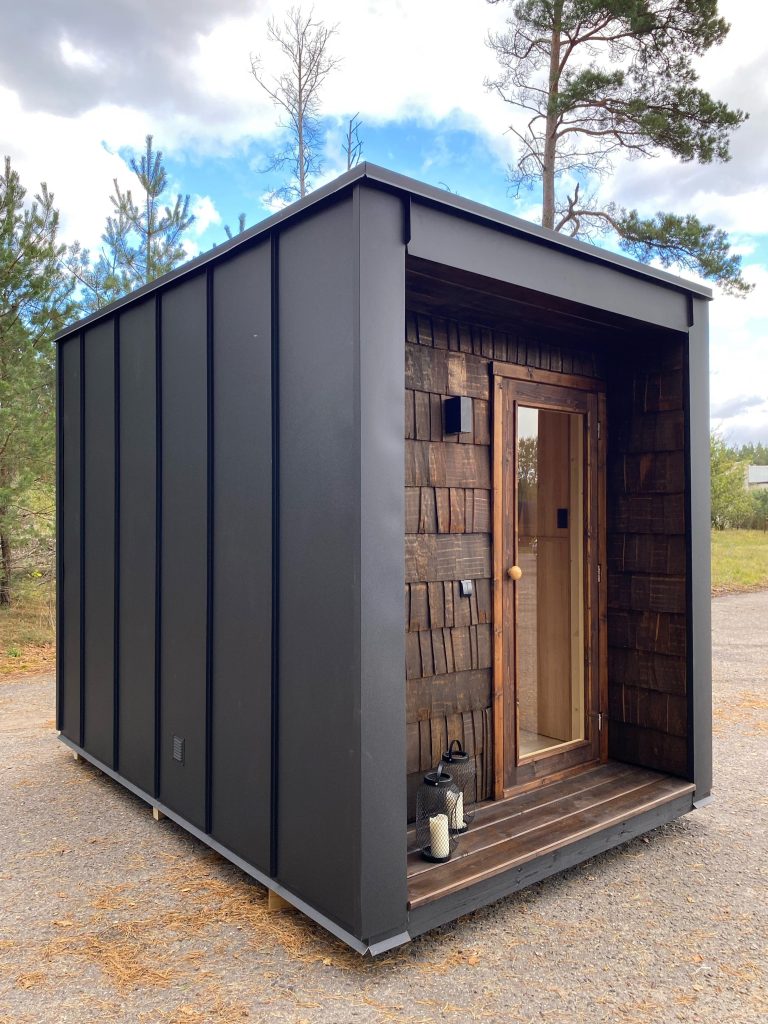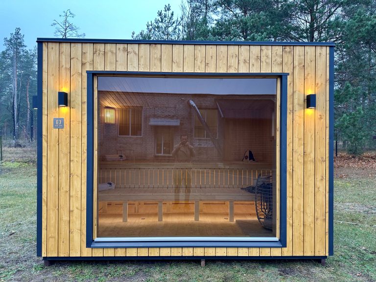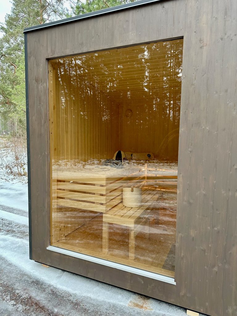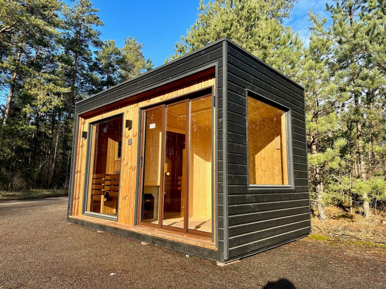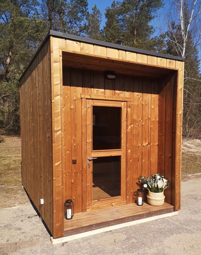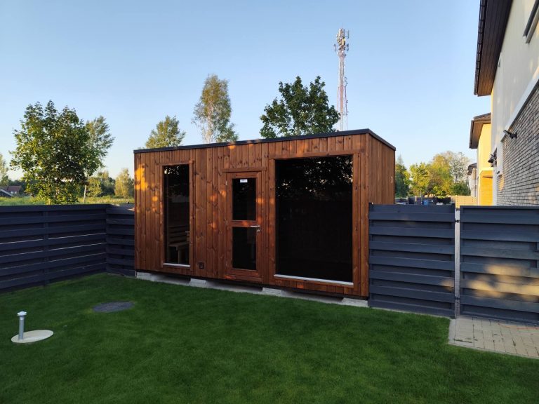 A new, modern design sauna that will look fabulous in your backyard. Large tinted tempered glass windows give this sauna a stylish and contemporary feel. The spacious and cozy lounge area is well-suited for gatherings, relaxation or leisure. You can convert your lounge room into a guest bedroom or swap the entire sauna for a mobile office. Sauna ,,Moderno‘‘ can be customized to match all your needs.