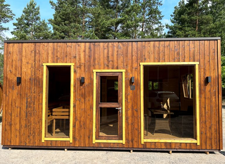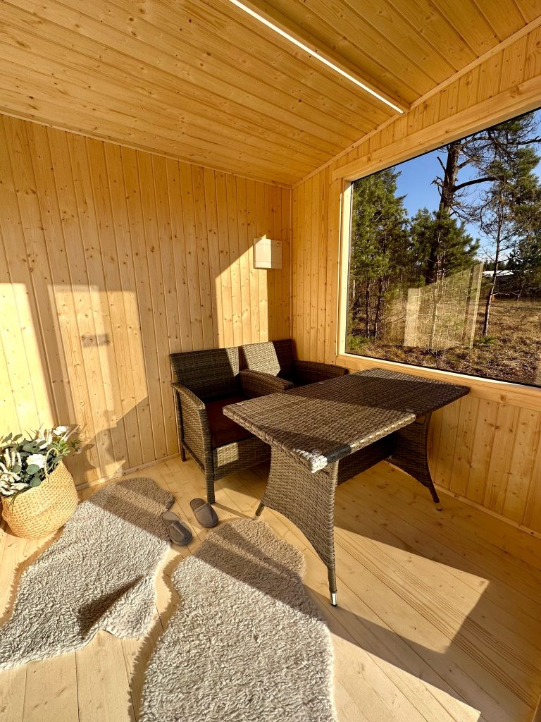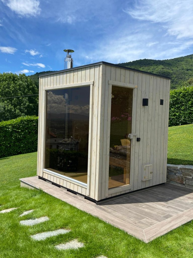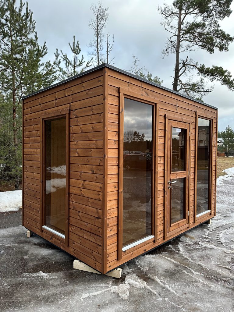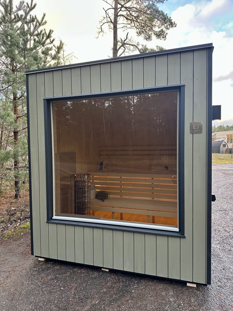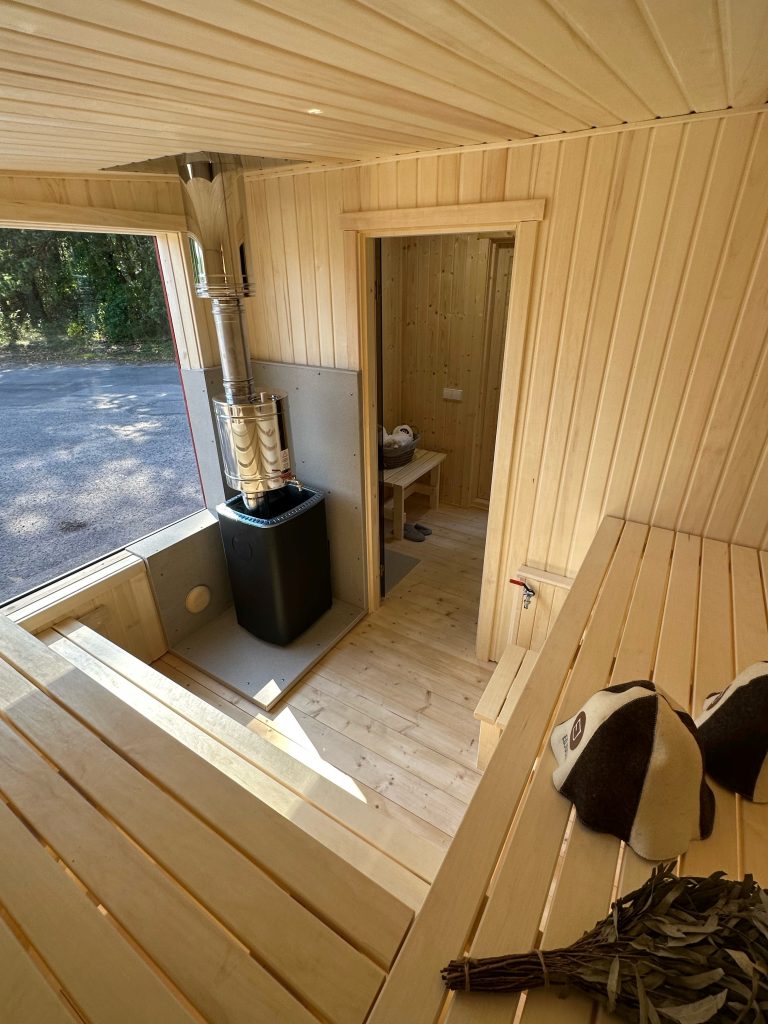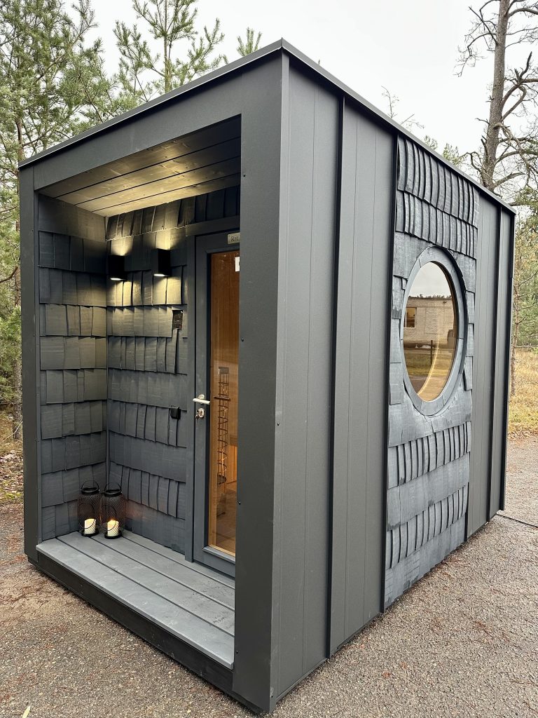 A new, modern design sauna that will look fabulous in your backyard. Large tinted tempered glass windows give this sauna a stylish and contemporary feel. The spacious and cozy lounge area is well-suited for gatherings, relaxation or leisure. You can convert your lounge room into a guest bedroom or swap the entire sauna for a mobile office. Sauna ,,Moderno‘‘ can be customized to match all your needs.
