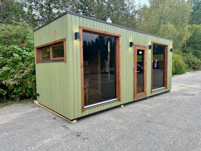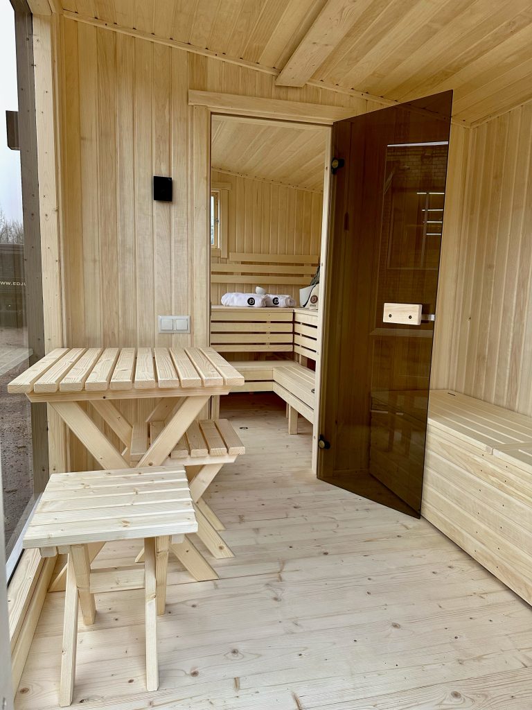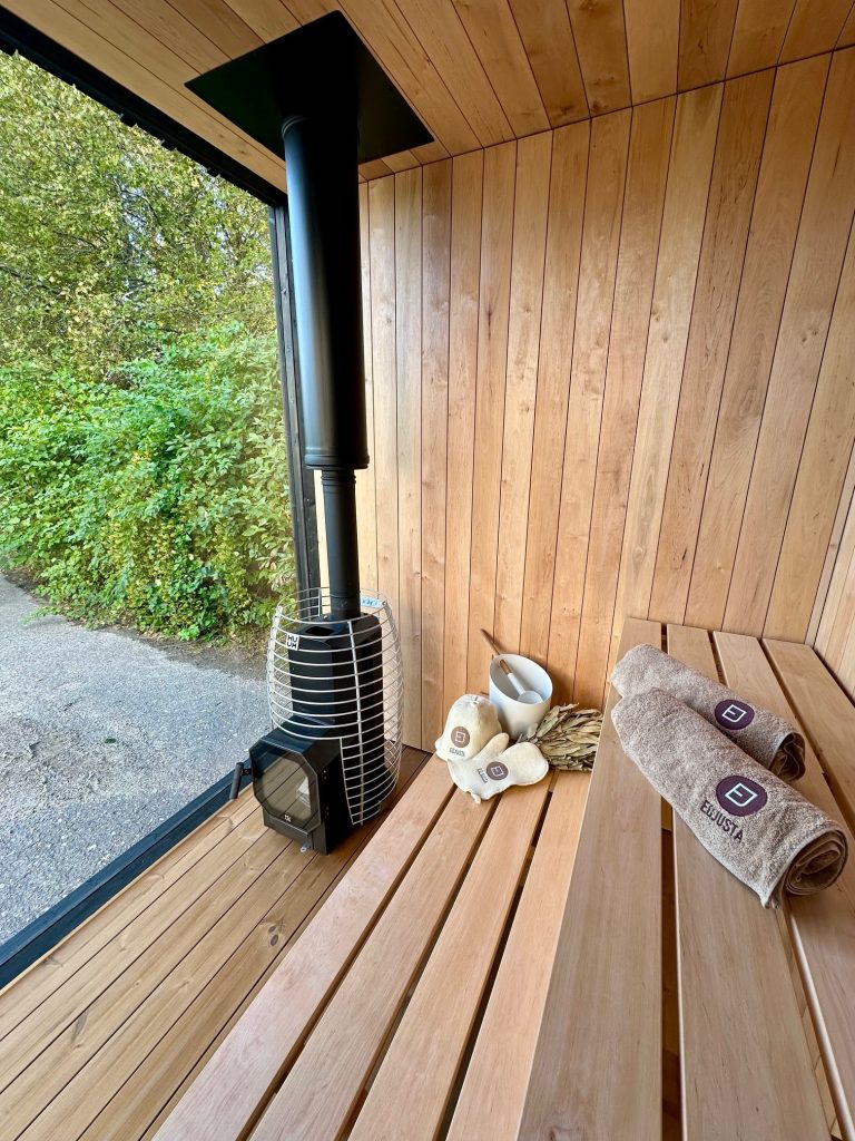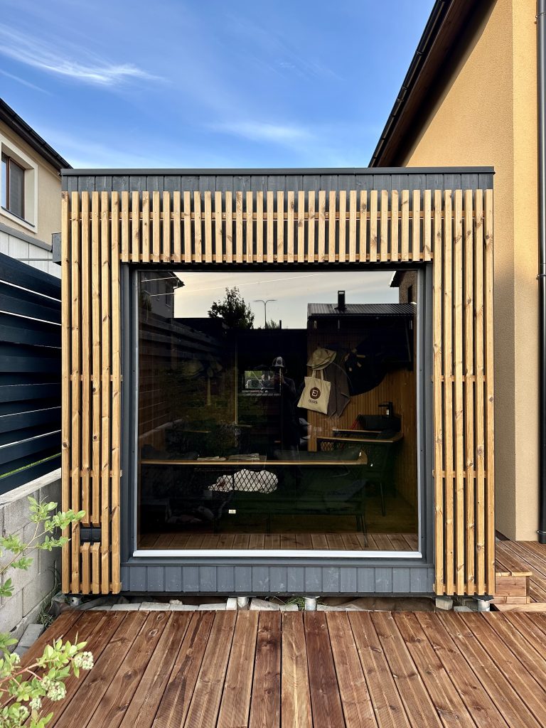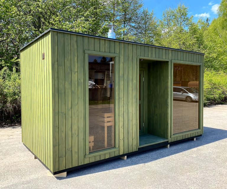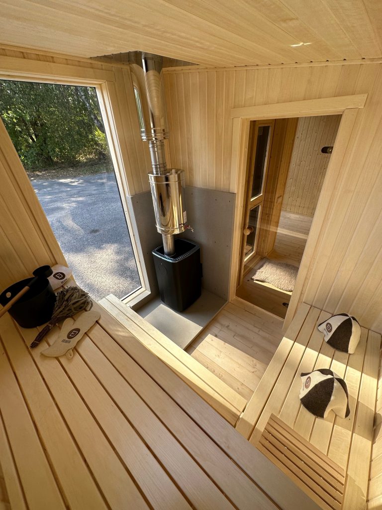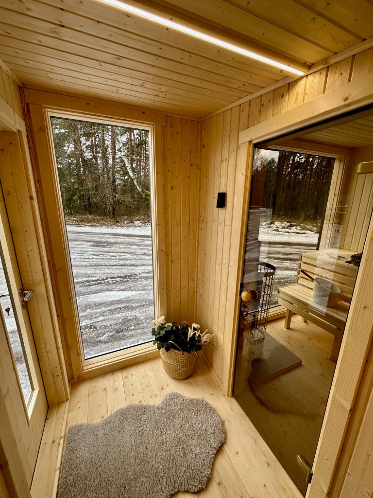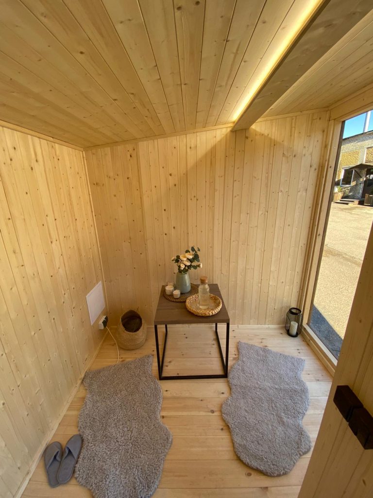 A new, modern design sauna that will look fabulous in your backyard. Large tinted tempered glass windows give this sauna a stylish and contemporary feel. The spacious and cozy lounge area is well-suited for gatherings, relaxation or leisure. You can convert your lounge room into a guest bedroom or swap the entire sauna for a mobile office. Sauna ,,Moderno‘‘ can be customized to match all your needs.
