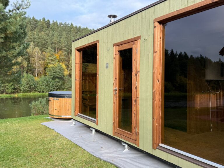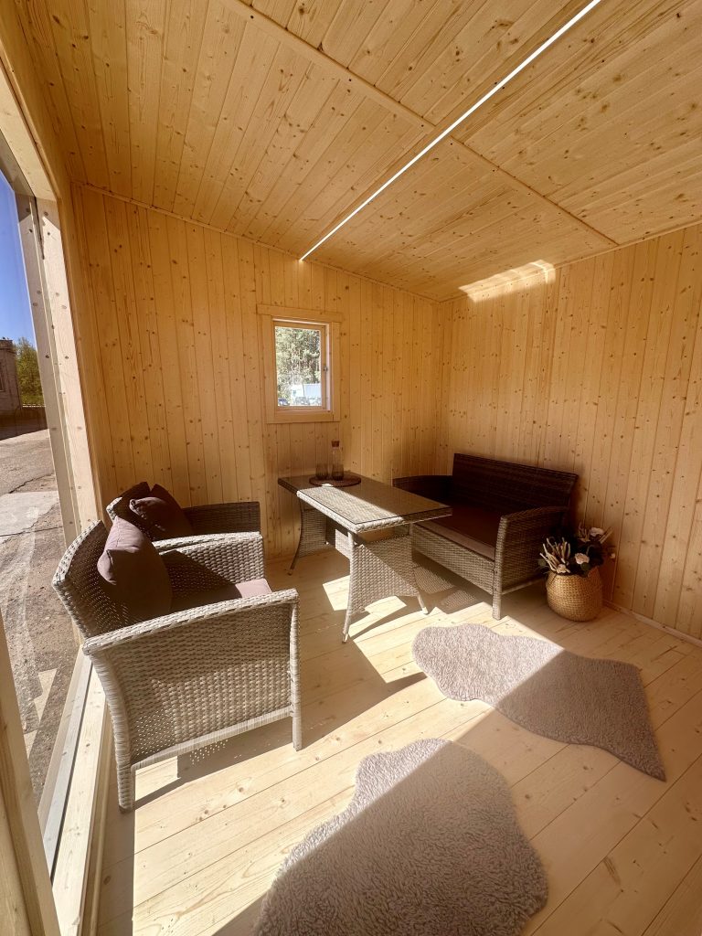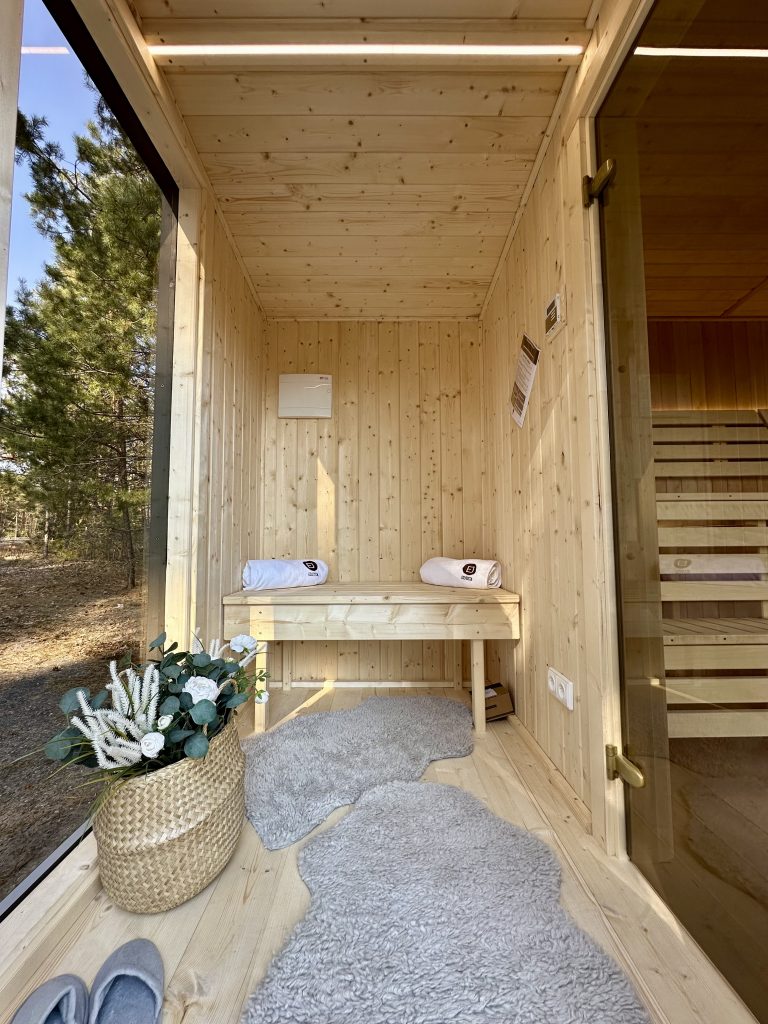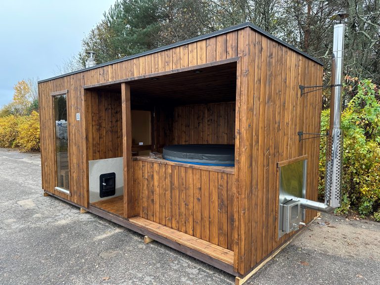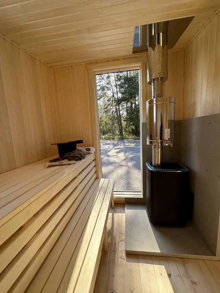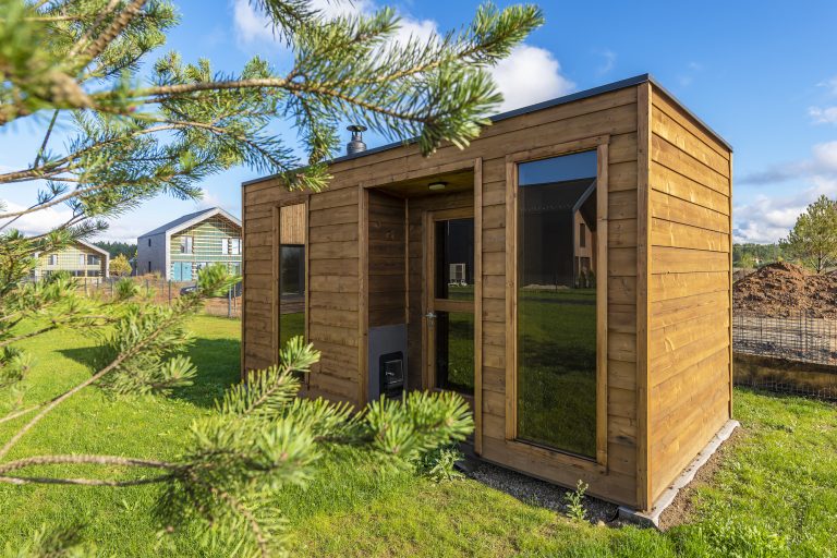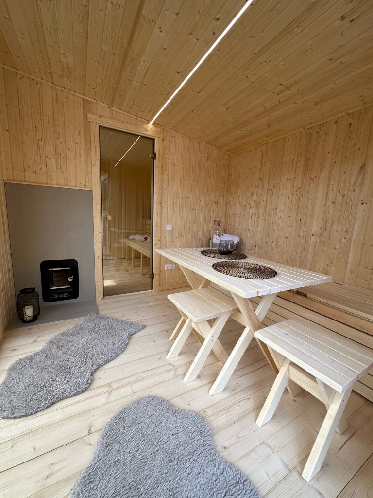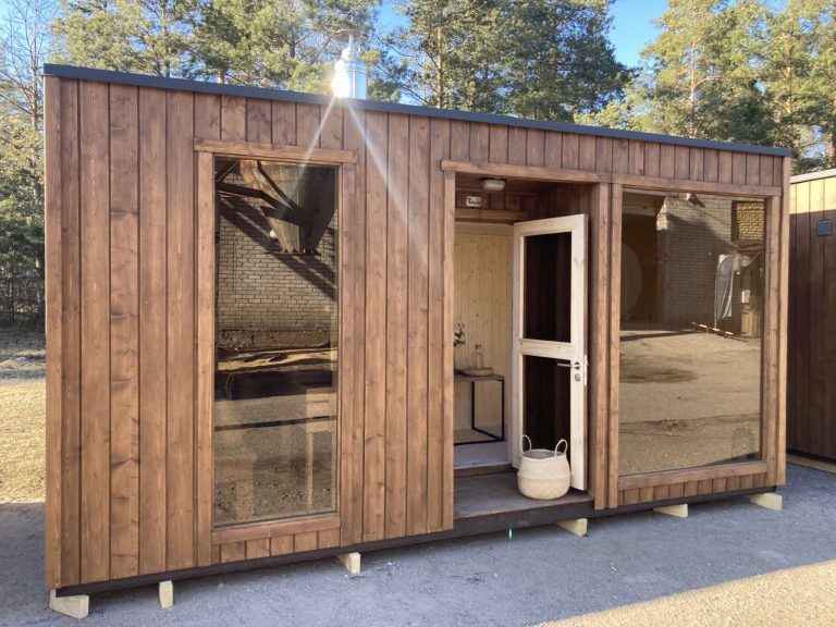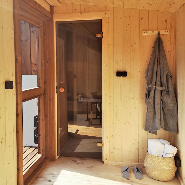 A new, modern design sauna that will look fabulous in your backyard. Large tinted tempered glass windows give this sauna a stylish and contemporary feel. The spacious and cozy lounge area is well-suited for gatherings, relaxation or leisure. You can convert your lounge room into a guest bedroom or swap the entire sauna for a mobile office. Sauna ,,Moderno‘‘ can be customized to match all your needs.