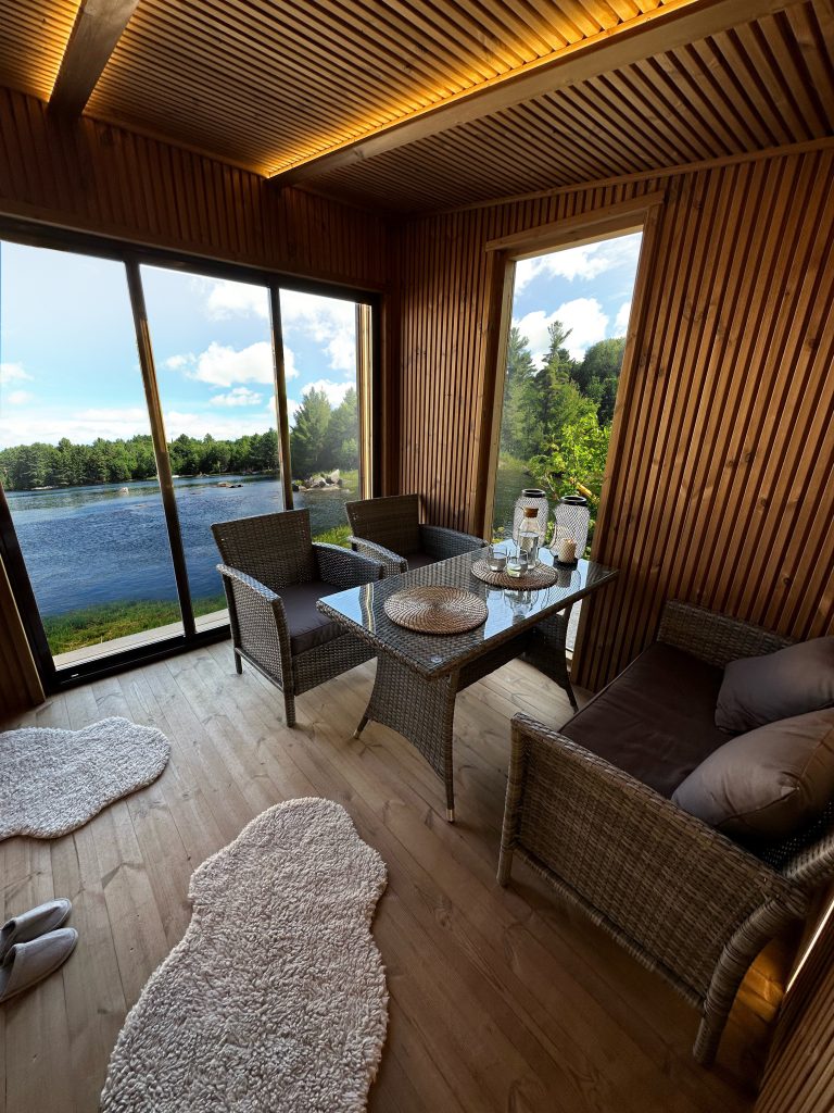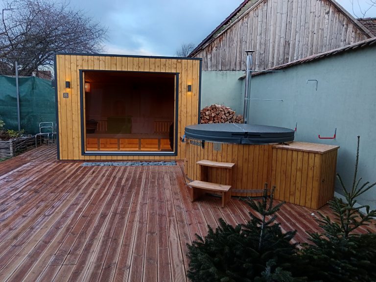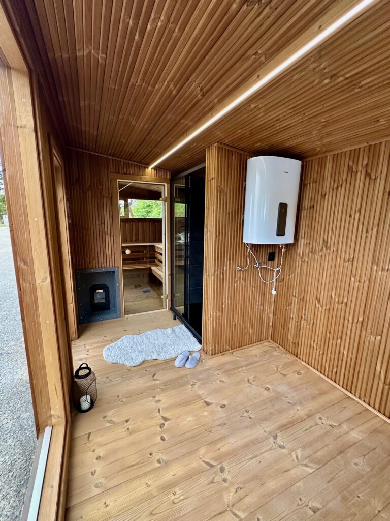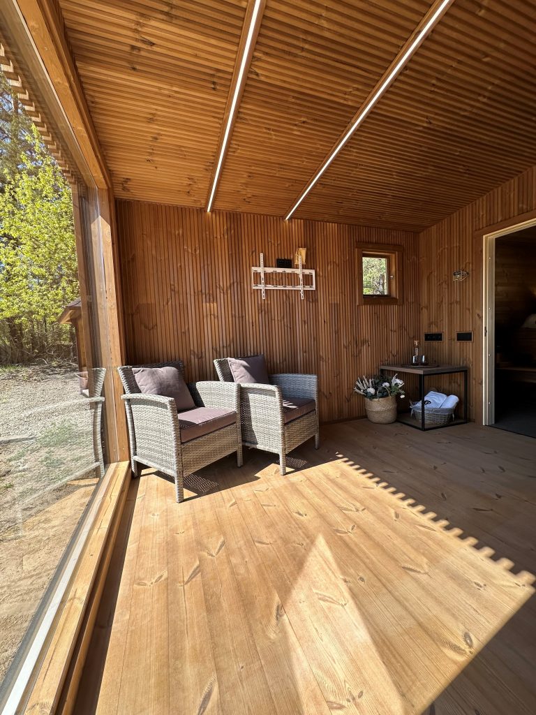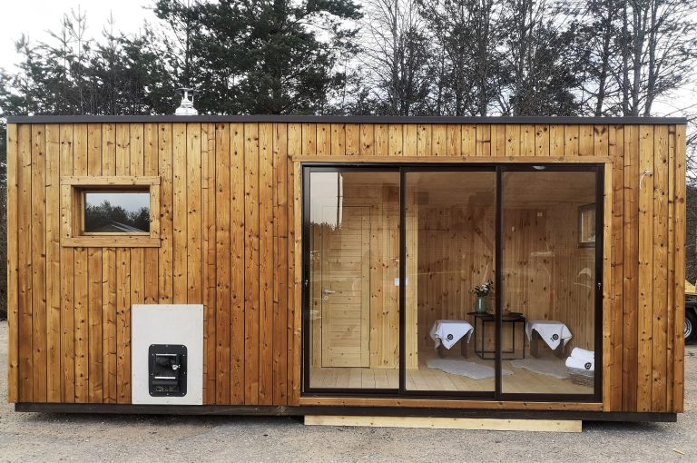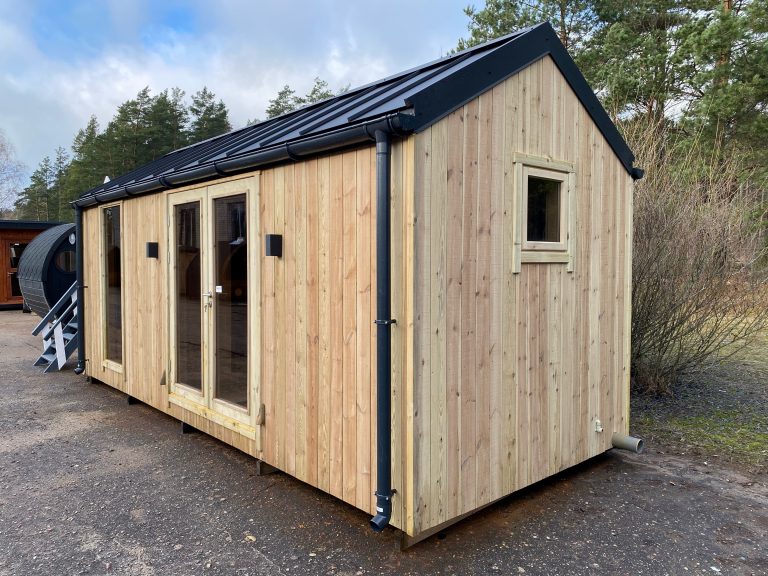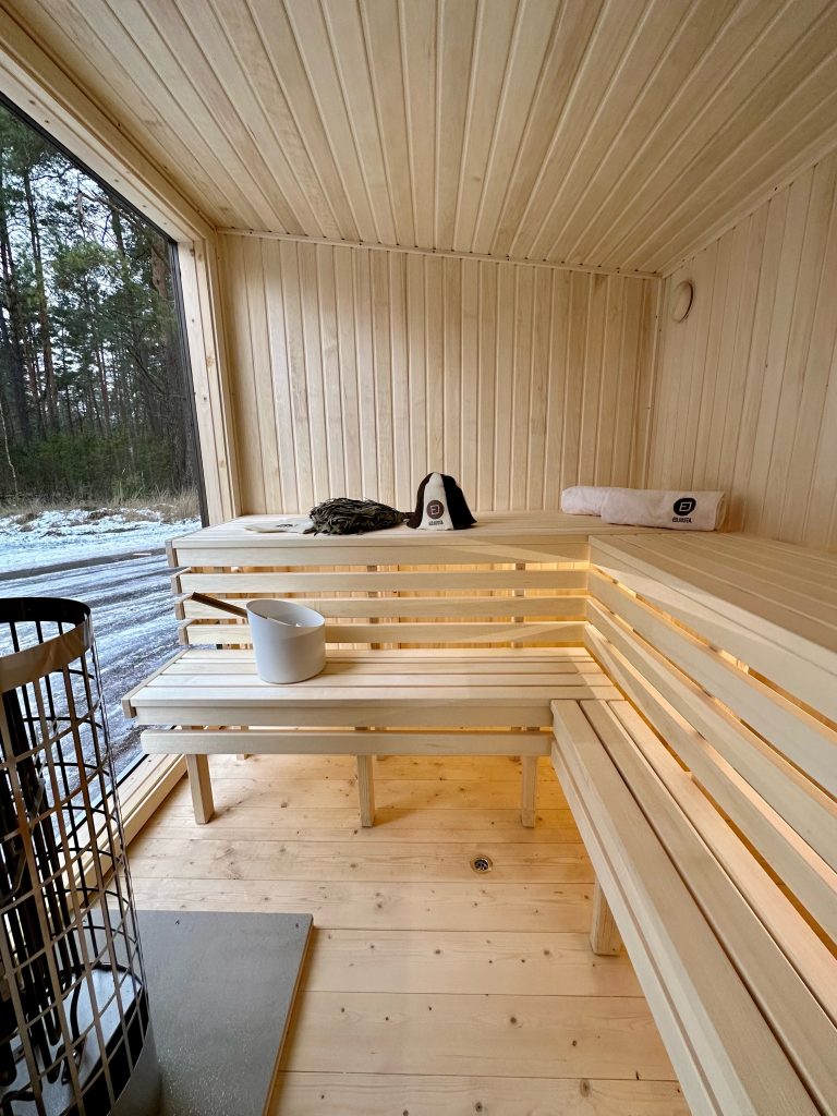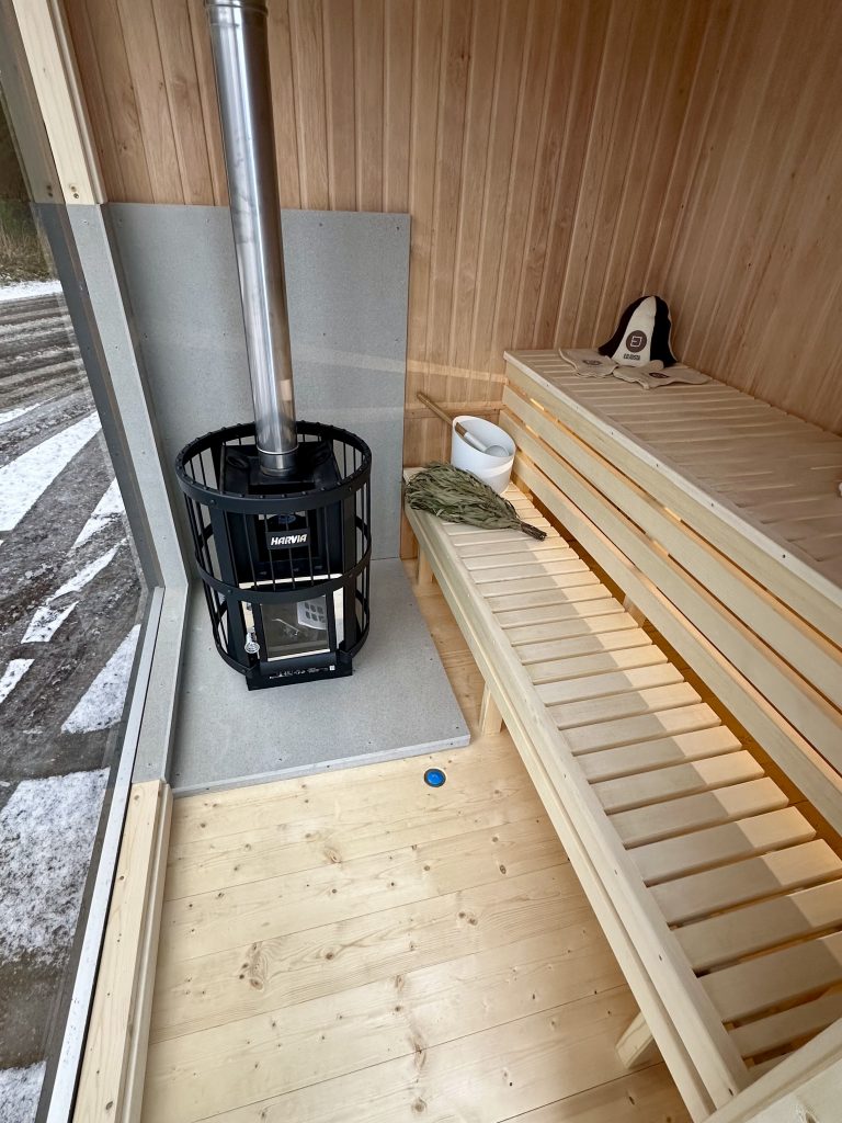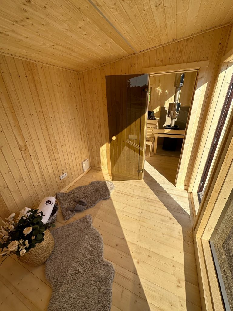 A new, modern design sauna that will look fabulous in your backyard. Large tinted tempered glass windows give this sauna a stylish and contemporary feel. The spacious and cozy lounge area is well-suited for gatherings, relaxation or leisure. You can convert your lounge room into a guest bedroom or swap the entire sauna for a mobile office. Sauna ,,Moderno‘‘ can be customized to match all your needs.