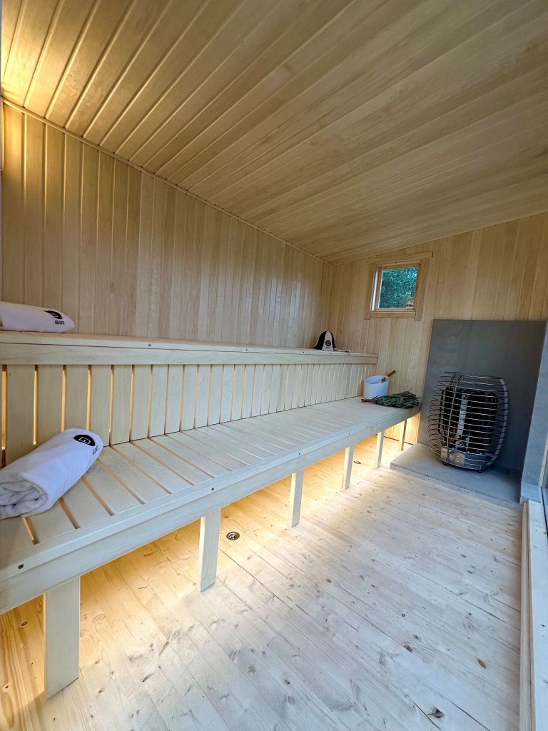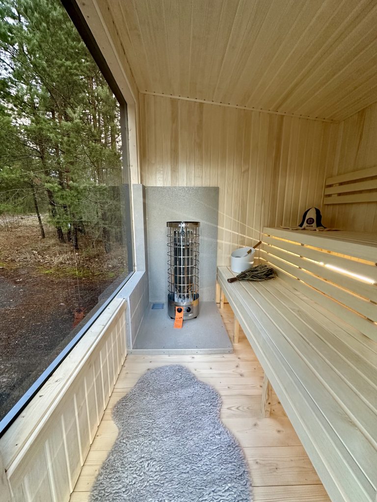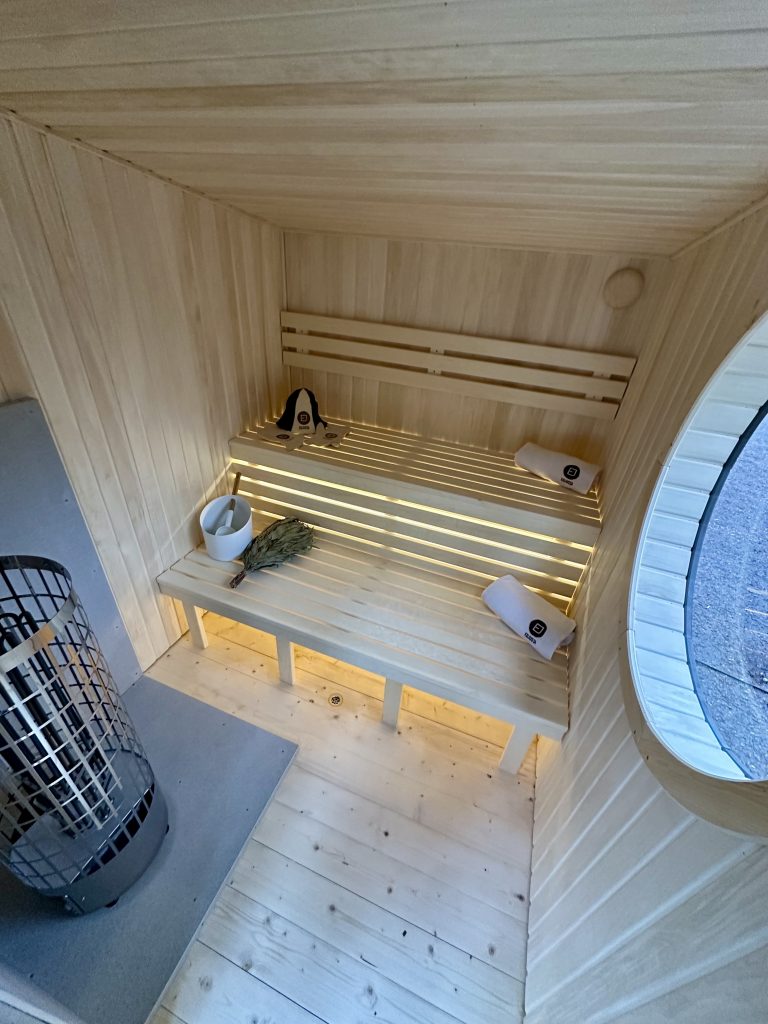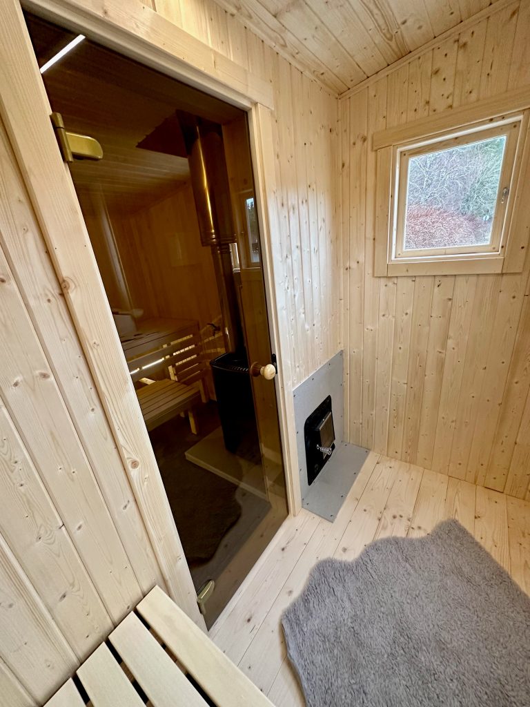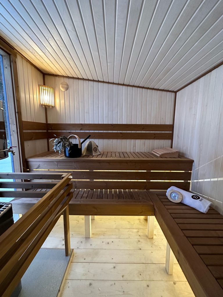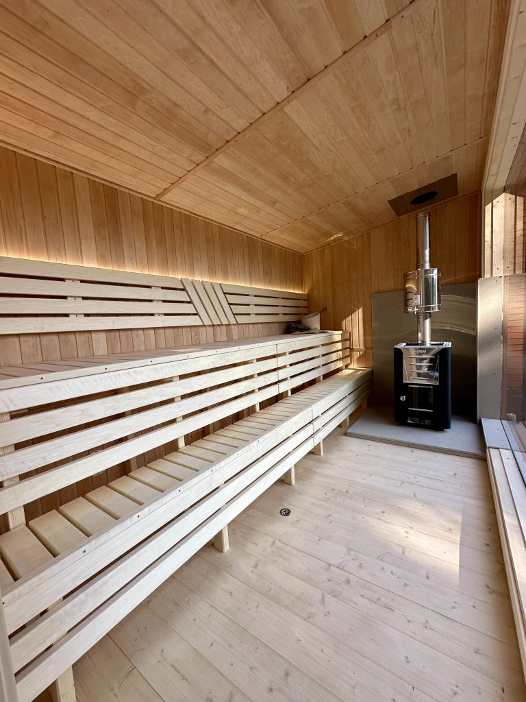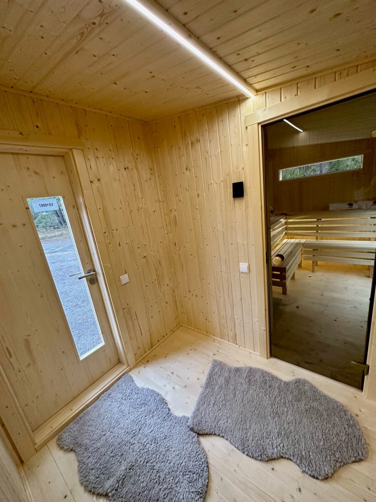 - LED lighting under benches in the sauna room.