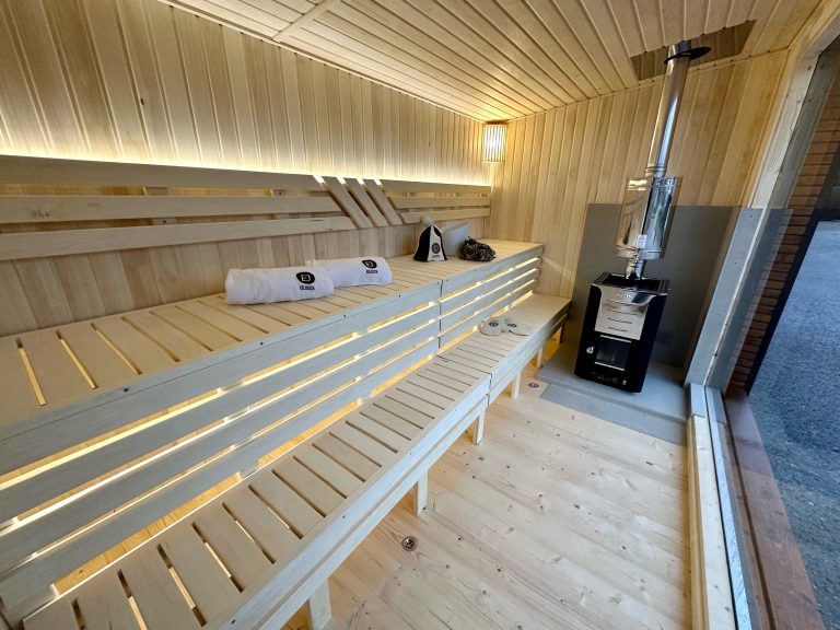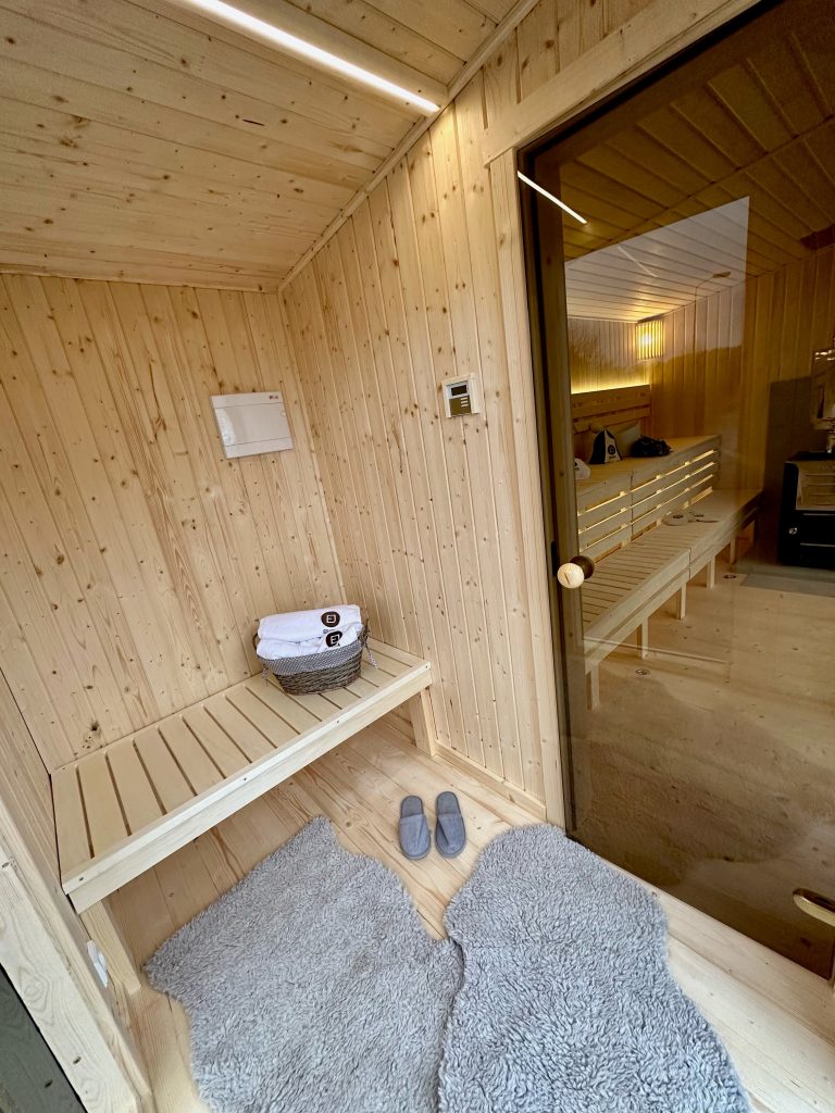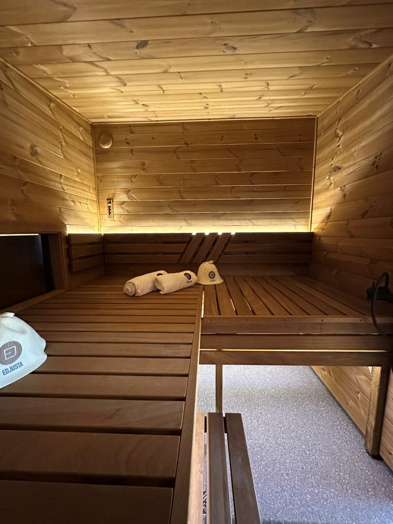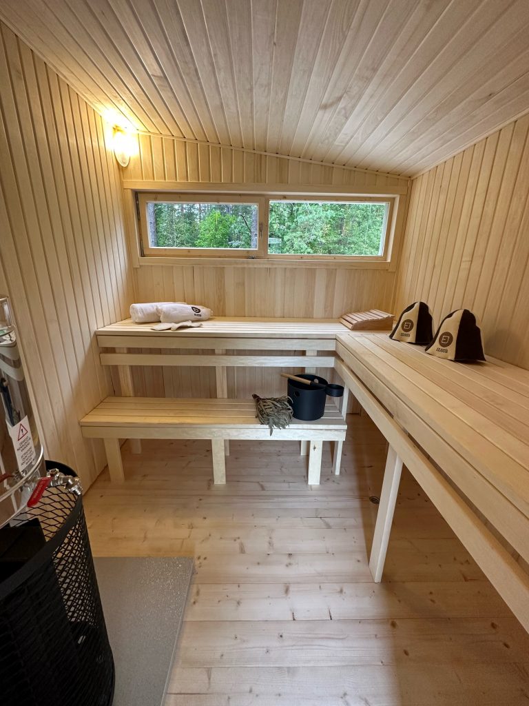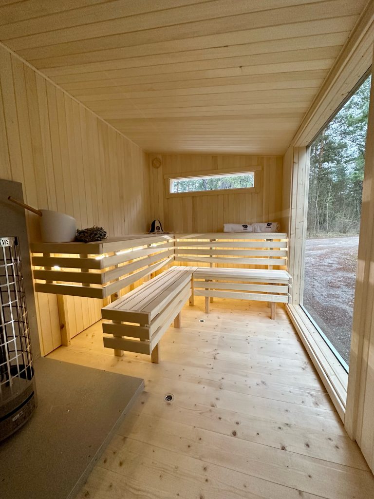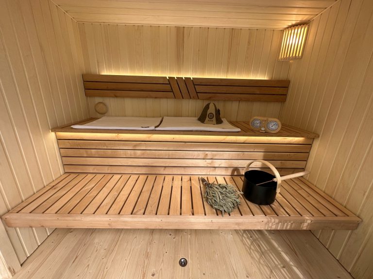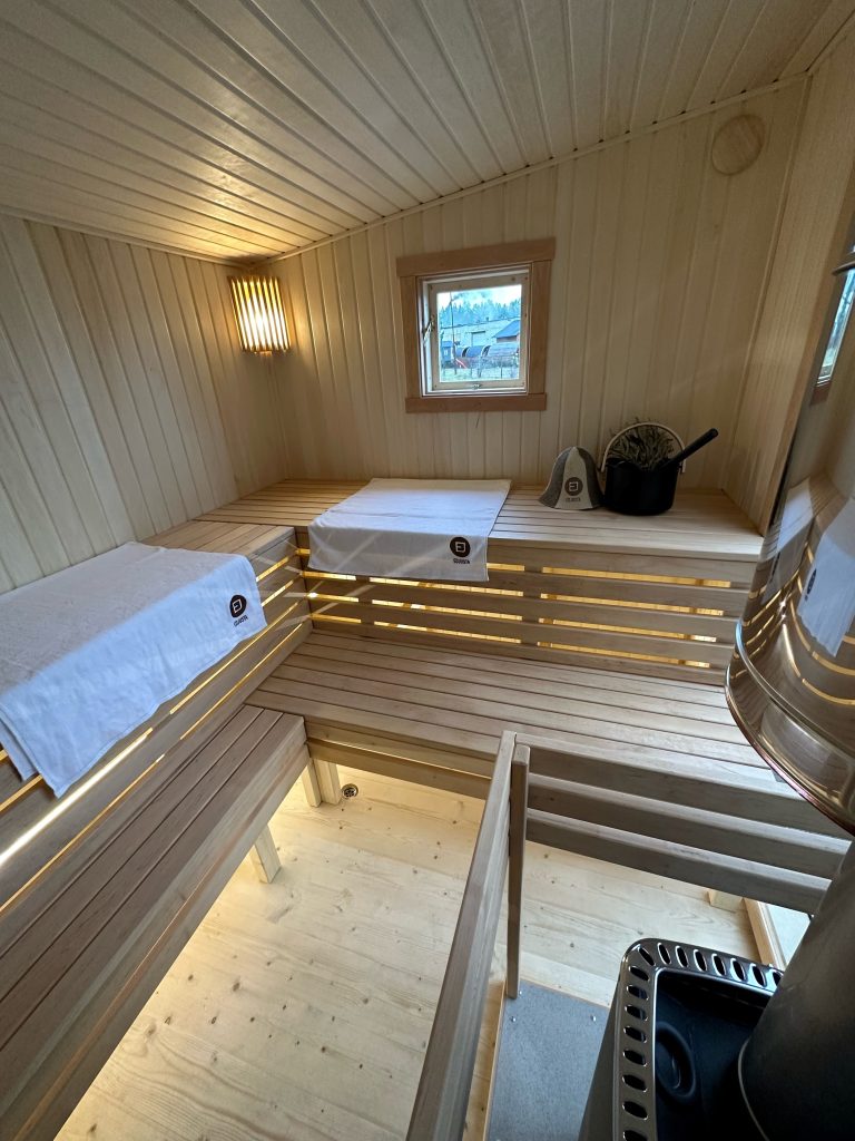 - LED lighting under benches in the sauna room.
