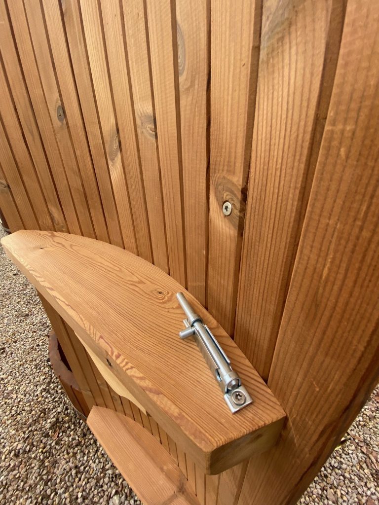 A matching wooden door will give you more privacy and will also keep your bathing cabin secure when you are not using it.