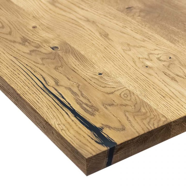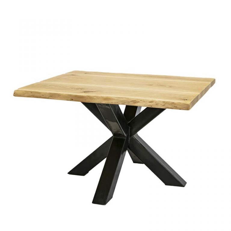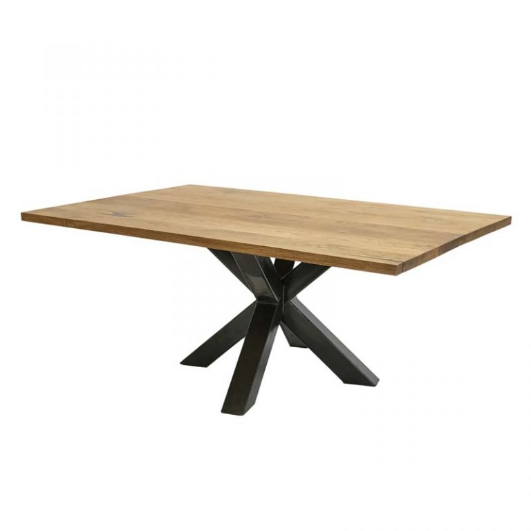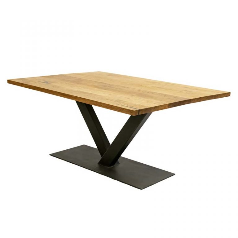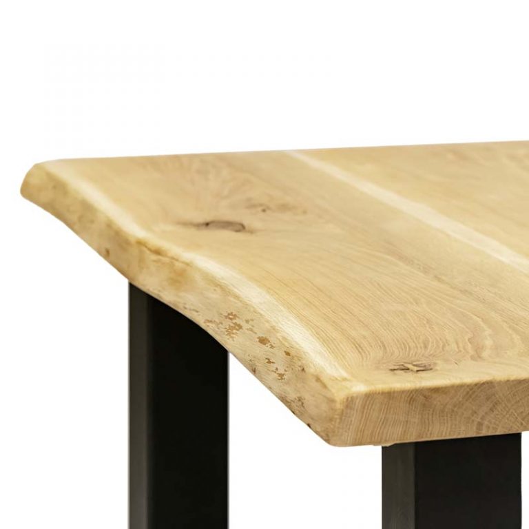 Industrial-style oak table with black steel legs that contain features formed by nature. The number of cracks, knots, and color nuances can vary from table to table. The raw tables are NOT treated, this is a natural oak. The tables colored by us are lacquered and therefore optimally protected against moisture and dirt from the outside. But you can choose to keep your table purely natural or to treat it with an oil or varnish.